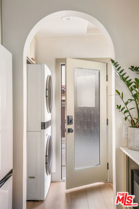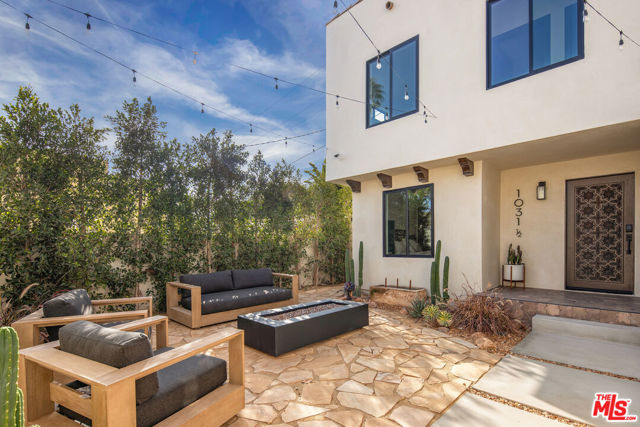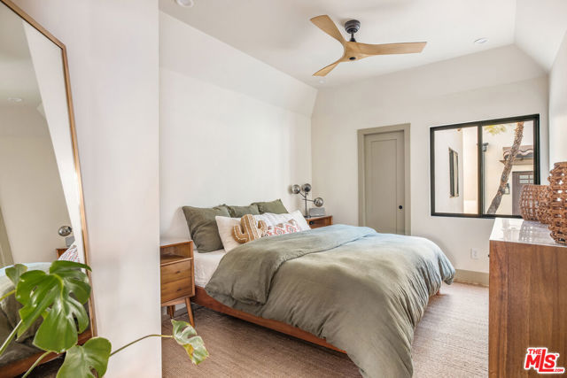 Welcome to Villa Galicia, a beautiful new construction, modern Spanish-style villas offering the perfect blend of luxury, Spanish design and privacy. This two-bedroom, one- bathroom gem is located in the front house duplex. Villa Galicia is the first of an exclusive new development of four resort-style villas being offered for lease. Each villa boasts impeccable finishes and thoughtful design details, giving each villa unique and individual charm, yet cohesive flow. Villa 1033 features a spacious, open-concept living area that seamlessly connects the kitchen, dining, and living spaces. Immediately you will be greeted with tall vaulted ceilings throughout with white oak beams. The dining area hosts a large island with counter seating and ample storage and the restored original built in china cabinet. The open concept kitchen is equipped with high-end Samsung appliances including a gas range with air-fry capabilities, a French door refrigerator with cube and nugget ice, and a purified water pitcher. The kitchen also offers ample storage. The living room is a true focal point, showcasing an oversized Spanish-style arched picture window with Spanish style fireplace that adds warmth and ambiance. Enjoy cinematic entertainment with the Samsung Frame TV and Sonos sound system, perfect for movie nights or unwinding after a long day. Both bedrooms are generously sized with walk in closets. The large central bathroom features a private water closet, large double vanity, marble sconce, linen closet, and an oversized luxurious shower with a tiled trench drain for a spa-like experience. The villa is equipped with smart home features, including Schlage electronic deadbolts for keyless entry that can be unlocked from smart phone, app, or Apple Watch. A LG washer and dryer tower is strategically located by the back door with ample storage surrounding it. Step outside onto your private front porch with traditional Spanish tile. It's the perfect spot for morning coffee or evening cocktails, offering a serene retreat in the comfort of your own home. The expansive backyard is perfect for outdoor living, featuring West Elm outdoor furniture, a gas fire pit, and a Blackstone grill all for common use. It's an ideal space for entertaining guests or simply relaxing and enjoying the beautiful surroundings. Villa Galicia offers the ultimate resort-style living with modern comforts and unparalleled privacy, making it the perfect home for those seeking both luxury and convenience in one of West Hollywood's most desirable locations, walking distance to many shops, restaurants and new Erewhon opening.