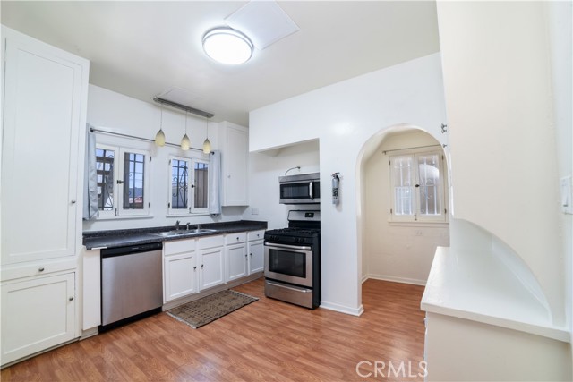 Charming rear triplex in desirable Mid-Wilshire featuring hardwood floors, freshly painted exterior, detached 3-car garage, fruit trees, and a private backyard. Unit 1036: 1BR/1BA upstairs with vaulted ceilings, fireplace, balcony, in-unit laundry, and A/C—occupied by a long-term tenant. Unit ½: bright 1BR/1BA upstairs with views, currently vacant at $2,050/mo. Unit 1038: spacious 2BR/2BA with fireplace, formal dining, bonus room, and laundry- tenant opts not to take a garage at this moment; otherwise, $100 rent per month. Each unit includes its own water heater, washer/dryer, and refrigerator. Electrical panel upgraded in 2012. A rare investment opportunity with character, stability, and strong rental upside in one of LA’s most sought-after neighborhoods.