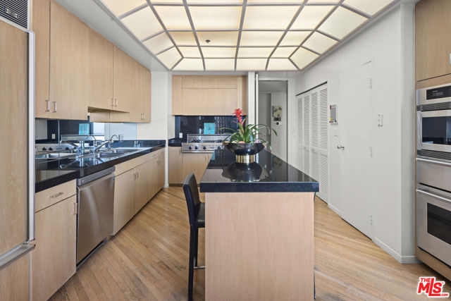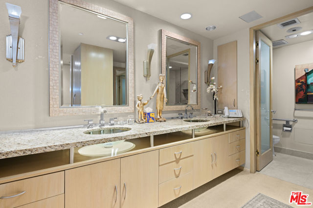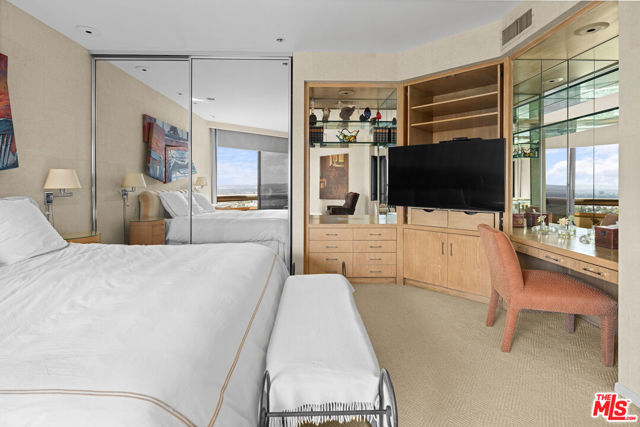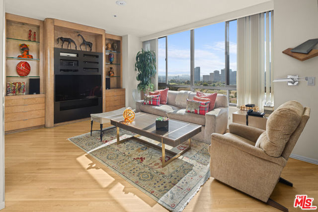 Incredible Panoramic Views | Coveted Southwest "05 Stack" | The Mirabella, Wilshire Corridor Positioned in the highly sought-after southwest"05stack," this designer residence at the prestigious Mirabella offers an unparalleled combination of light, scale, and dramatic views. Set on the quiet side of Wilshire, the "05 stack" extends further out than any other part of the building, creating unobstructed views in every room that extend from Downtown LA to the ocean. A double-door entry welcomes you into an expansive, light-filled floor plan featuring 9-foot ceilings, hardwood floors, a stone fireplace, and walls of glass that seamlessly connect to a spacious view terrace. The open living room flows effortlessly into the dining area, which includes a wet bar that is perfect for entertaining. An elegant powder room adds to the home's sophistication. The second bedroom suite (currently configured as a media room) also opens to the terrace, while the primary suite occupies the opposite wing, offering exceptional privacy. The primary retreat is generously scaled with an enormous remodeled bath, a walk in closet, plus additional closets, custom built-ins, and its own private view balcony. The gourmet kitchen showcases stainless steel appliances ,hardwood floors, a breakfast area with view balcony, a center island with breakfast counter, black granite countertops, and a laundry closet for added convenience. Residents of the Mirabella enjoy the very best in full-service luxury living: 24-hour concierge, doorman, and valet, Fitness center, swimming pool, spa, and sauna, conference/party room, 2 side-by-side parking spaces plus additional storage, secure entry off Wilshire. Perfectly situated in the heart of the Wilshire Corridor, this residence is minutes from Beverly Hills, Century City, Westwood Village, UCLA, Cedars-Sinai, and some of Los Angeles' finest dining and shopping