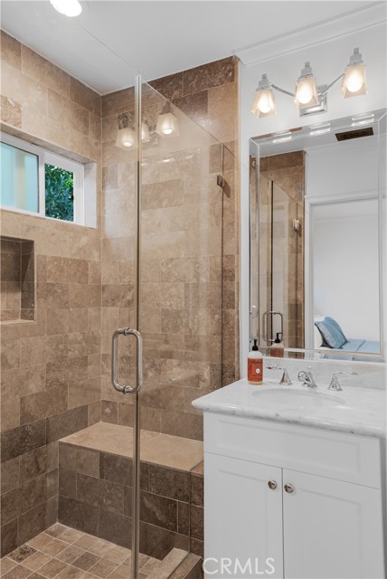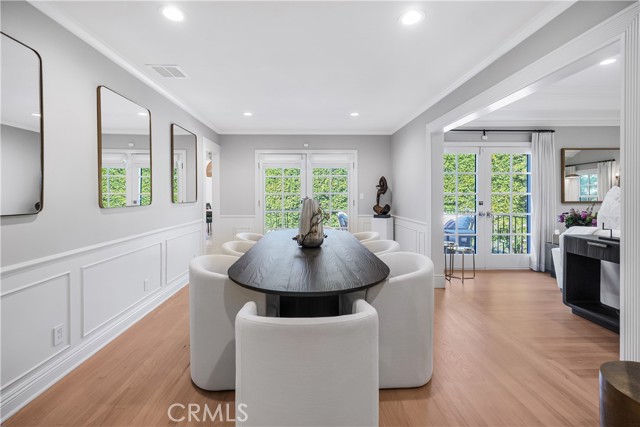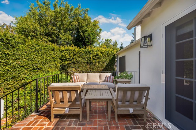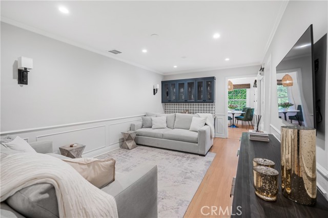 Exceptional 3-bedroom, 3.5-bath traditional single-story residence is ideally situated in the heart of Little Holmby. The elegant living room showcases exquisite ceilings and moldings, custom cabinetry, a gracious fireplace, and floor to ceiling windows that bathe the space in natural light, seamlessly flowing into the formal dining room, perfect for both intimate gatherings and grand entertaining. A warm and inviting den provides an additional retreat, complete with a beautifully crafted custom bar and direct access to both the dining room and the stunning newly redesigned kitchen. Flooded with natural light, the kitchen features pitched ceilings, a charming breakfast area, top-of-the-line appliances, and professionally designed custom cabinetry, drawers, and pantry—creating a true centerpiece of the home. French doors from the living room, dining room, and kitchen open effortlessly to the exterior brick dining patio, multiple lounge areas, and a lush, mature hedged grassy yard, offering the ultimate Southern California indoor-outdoor lifestyle and an entertainer’s dream setting. The expansive primary suite is a serene sanctuary, highlighted by vaulted ceilings, custom built-ins, multiple walk-in closets, and a luxurious newly renovated bathroom with dual vanities, soaking tub, and a beautifully designed walk-in shower. Two additional en-suite bedrooms complete the private bedroom wing. Additional amenities include hardwood floors throughout, new Emtek hardware, new dual-pane windows and security-screened doors, alarm system, and direct-access garage with EV charging capability. A rare and refined offering in one of Little Holmby’s most coveted neighborhoods.