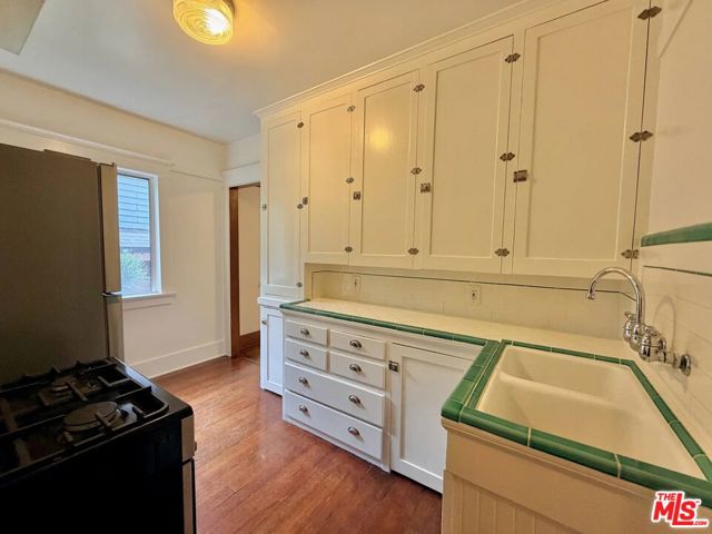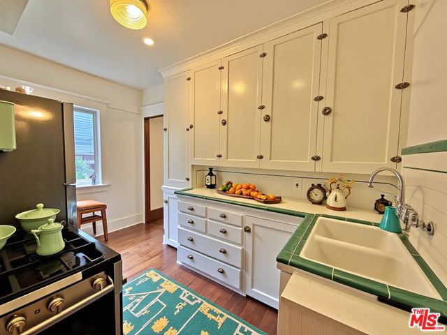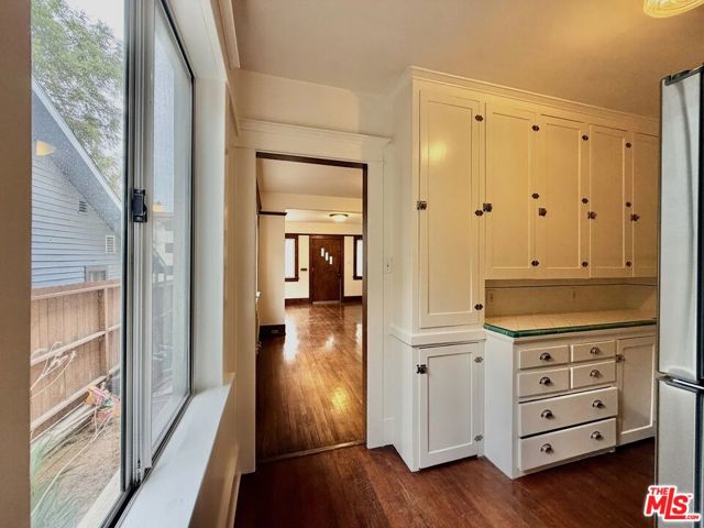 Located in the heart of Echo Park - just a few steps away from the famous lake - this spacious 1st floor unit is light, bright and has so much character! A Classic built-in dining room China cabinet anchors the home's historic appeal. Original kitchen tile and cabinetry, crown molding, wood floors throughout, a large closet with a secret closet inside, and laundry room w/ back door to patio. Large shared terrace with a view of Beautiful Echo Park Lake and Fountain! Classic 4 unit Craftsman. Built in 1916. Sits one level above street level, offers multiple shared outdoor spaces surrounded by mature trees and plants. Central and walkable to everything that Echo Park and Sunset Blvd has to offer - cool shops, cafes, restaurants and bars, and transportation. Note: Assigned Garage is undergoing renovation for up to first two months of the lease. Monthly Rent to be discounted by $100 until garage use is possible.