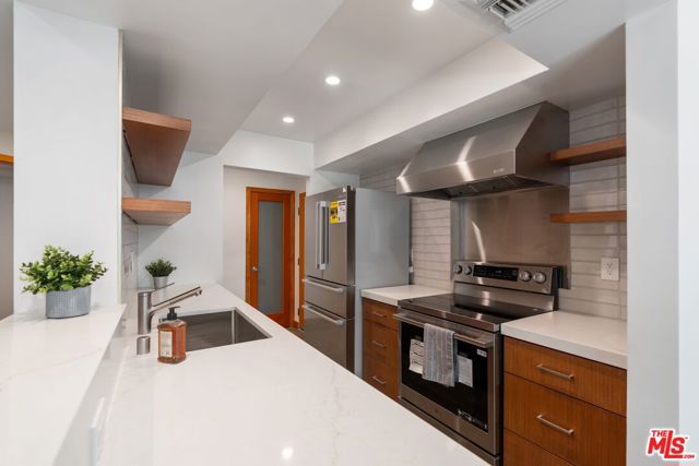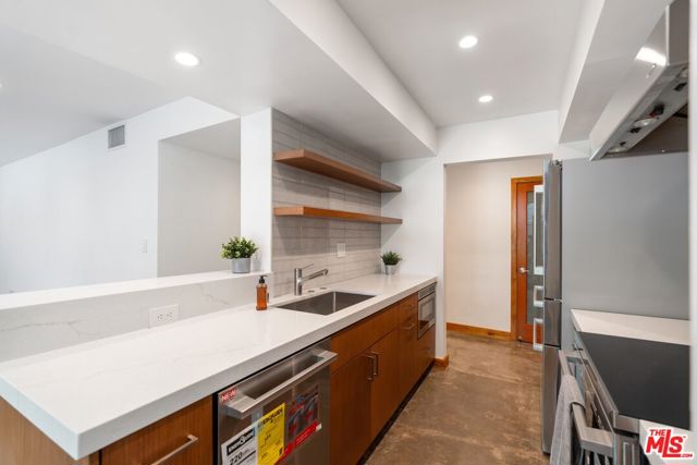 Tucked away on the charming and quiet Olive Drive, this beautifully remodeled 2x2 corner unit offers the perfect balance of style, comfort, and location. Thebright, open layout is enhanced by polished concrete floors, warm bamboo flooring in the primary bedroom, and expansive windows that invite natural light throughout. The midcentury, updated kitchen flows seamlessly into the living space, while tiled baths and a NEST thermostat add modern convenience. Step outside to your private outdoor area, just steps from the pool, creating a tranquil retreat in the heart of the city. With two side-by-side parking spaces and effortless access, every detail is designed for ease. Situated between Sunset Blvd and Santa Monica Blvd, steps from the Pendry Hotel and the Sunset Strip, this home is West Hollywood living at its finest.