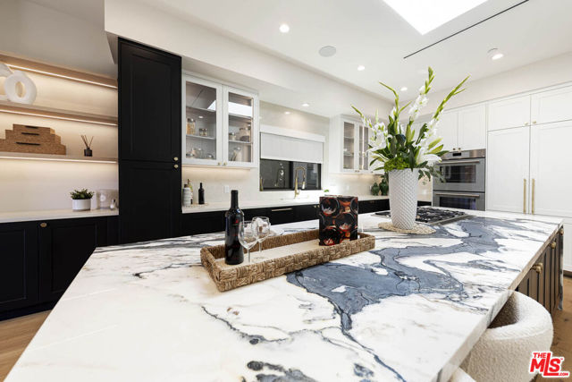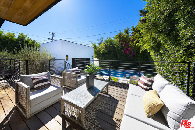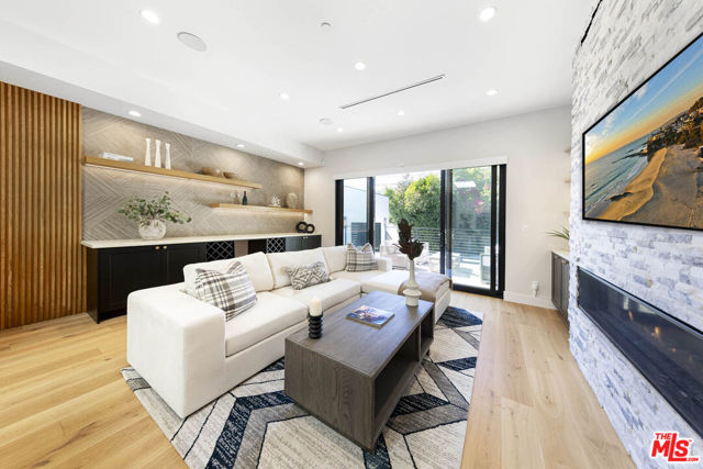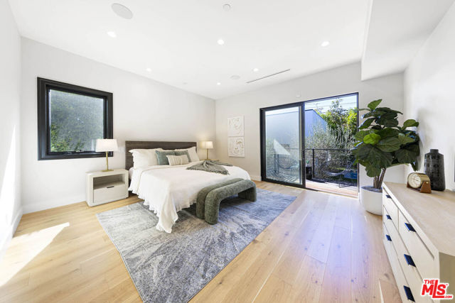 Exceptional value in this newer-construction modern farmhouse with a permitted ADU featuring its own address and entrance. Experience the best of Beverly Grove living from this perfectly situated compound on one of Beverly Grove's most walkable and picturesque streets. This single-story smart home offers rare privacy and effortless sophistication. Behind tall hedges and secure gates, natural light fills open, airy entry and living room highlighted by dramatic floor to ceiling fireplace. Wide-plank white oak flooring, high ceilings, and designer details throughout. The dining room connects to the living room providing the perfect size for hosting friends and family. The chef's kitchen centers on a dramatic 12-foot marble waterfall island, custom cabinetry, and high-end appliances which open to the family room featuring floor-to-ceiling fireplace, an abundance of custom built-ins, wine rack, LED-lit display shelves, as well as wall accent design features. The extraordinary flow of the open kitchen and family room transitions smoothly into the resort-style backyard with pool, spa, elevated deck for seating or dining area plus grassy lounge area. The serene primary retreat offers privacy away from the main living areas and bedrooms along with sliding doors to a private outdoor seating area. The primary also includes two LED-lit walk-in closets, a spa-inspired 2-person shower with bench and dual vanities. Two additional bedrooms share a thoughtfully designed connecting full bath, offering comfort and convenience. There is also a striking powder room off the main living areas. A California basement gives additional storage. The detached ADU with kitchenette and bath provides flexible living ideal for guests, an office, gym, or creative studio. Designed and built in 2022, this home delivers a refined, move-in-ready lifestyle just moments from The Grove, Beverly Hills, and LA's best dining and shopping. *more photos coming soon*