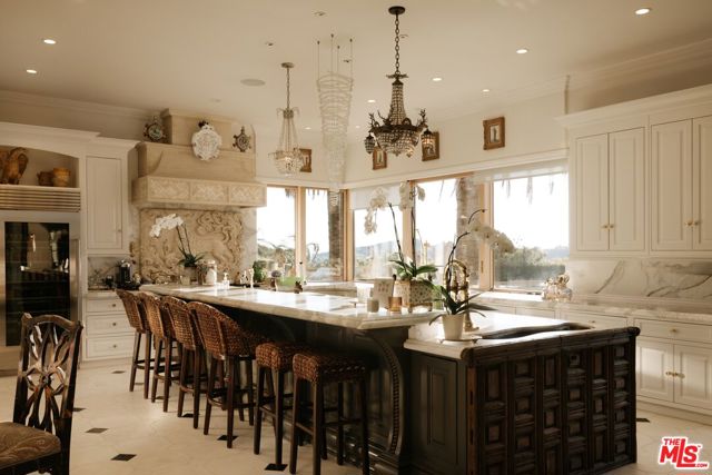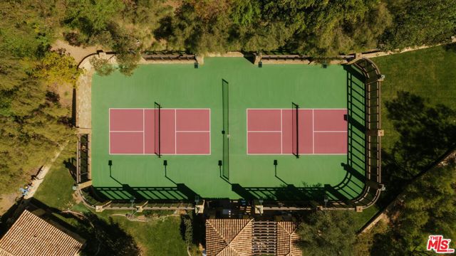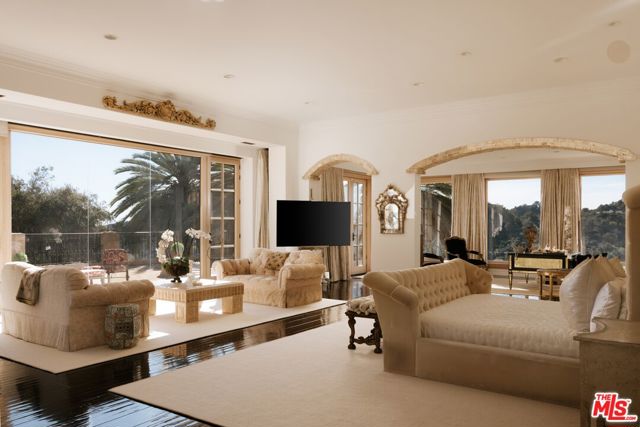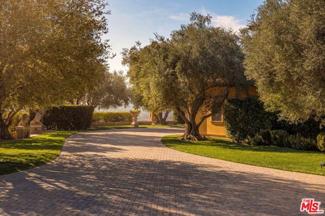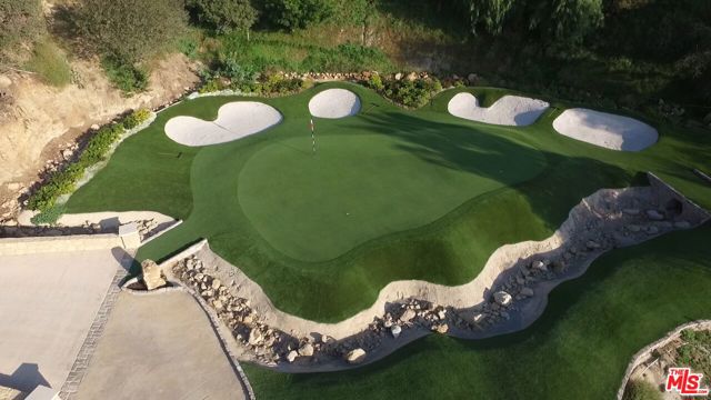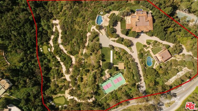 Set across more than 10.5 gated acres along iconic Mulholland Drive, Villa Colibri is a rare resort-caliber compound estate defined by its very own private 24-hole par-3 golf course, expansive outdoor amenities, and sweeping canyon, lake, and mountain views. Designed for large-scale entertaining and private enjoyment alike, the estate offers an exceptional lifestyle experience seldom found in Beverly Hills. The grounds are the centerpiece featuring a professionally designed golf course by Dean Reinmuth, a regulation tennis court with illuminated pavilion, two pickleball courts, bocce court, and multiple resort-style water features including two swimming pools, reflecting and wading pools, a waterfall, and fountains. Formal gardens, citrus groves, manicured lawns, and a series of terraces create a park-like setting ideal for hosting events ranging from intimate gatherings to large celebrations. A stately dual-gated entrance, including separate service access, leads to an expansive motor court with substantial on-site parking capacitywell-suited for large-scale entertaining. The main residence reflects classic European design, offering grand scale, volume, and timeless architectural detailing throughout. A dramatic great room with approximately 30-foot ceilings, coffered detailing, and dual sweeping staircases serves as the focal point of the home. Interior finishes include limestone, marble, and hardwood flooring, complemented by custom fireplaces, imported antique elements, and designer lighting. The chef's kitchen is equipped for both daily use and catered events, featuring an oversized island, professional-grade appliances, butler's pantry, and a full secondary prep kitchen. Retractable glass walls open to expansive terraces, creating seamless indoor-outdoor flow.Additional amenities include a library/den, theater lounge with bar, fitness studio, staff quarters, and a temperature-controlled wine cellar. The upper level is dedicated to two primary suites with private terraces and spa-style baths, connected by a loft-style walkway. Five additional en-suite bedrooms are located on the main level with separate access points for guests or staff. A detached guest residence with its own pool, kitchen, and accommodations provides flexibility for extended stays or hosting. Villa Colibri represents a rare opportunity to acquire a large-scale, amenity-rich compound in a prime Beverly Hills location, offering privacy, land, and a full suite of recreational and entertaining features.