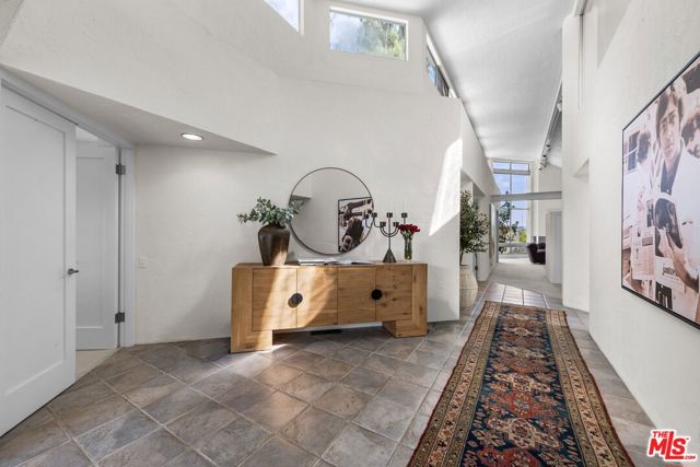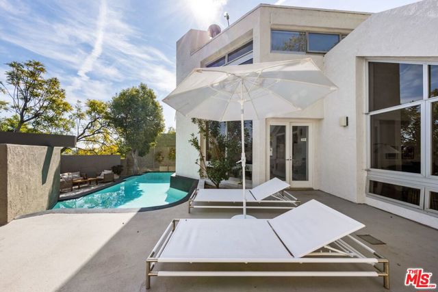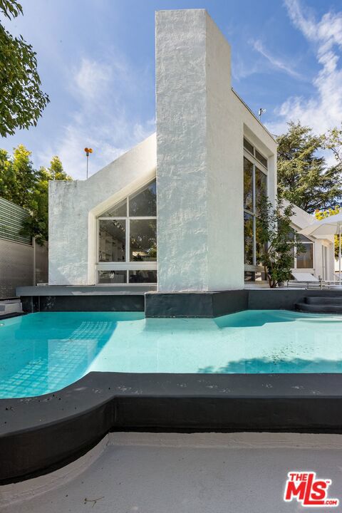 Designed by renowned Santa Monica architect Johannes van Tilburg, this striking residence is a refined expression of modernist geometry where simplicity, proportion, and light take center stage. Inspired by the architectural philosophy of Luis Barragan, the home blends modernism with subtle traditional influences. Clean architectural lines and thoughtfully placed interior windows foster a dynamic interplay of openness and connection. Soaring ceilings provide gallery-scale walls ideal for art, while expansive windows frame tranquil views and bathe the interiors in natural light. The seamless indoor-outdoor flow is perfectly suited for entertaining, anchored by a reimagined pool that commands the rear deck, complete with a lovers fountain that enhances the home's tranquil, resort-like atmosphere. The spacious primary suite features generous closet space, complemented by three additional bedrooms, one currently styled as a home office. Celebrated in the LA County Museum of Art Art & Architecture Tour, the Women's Architectural League, and the American Institute of Architects Tour, this nearly 3,000-square-foot home is a rare and private offering, tucked away in the coveted Helena's.