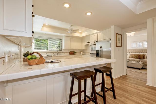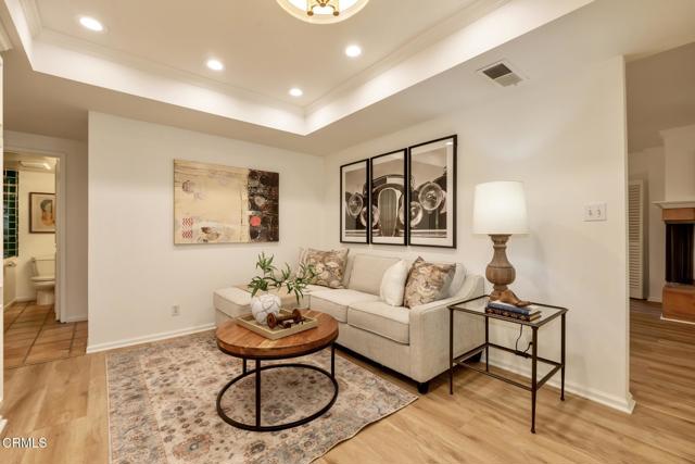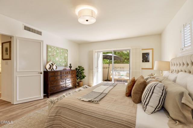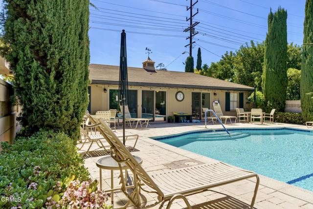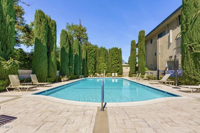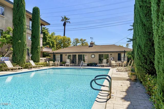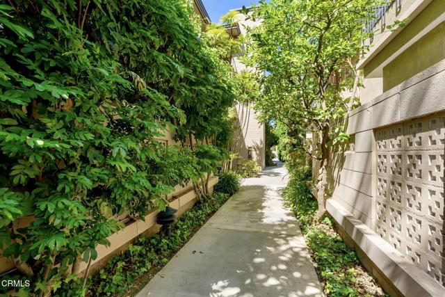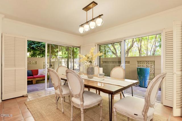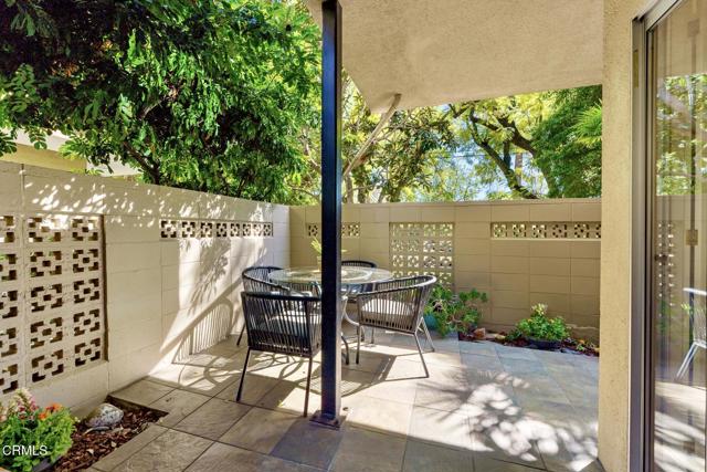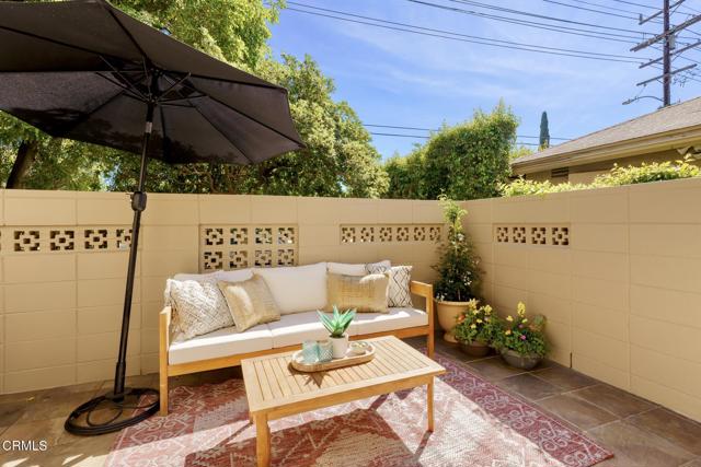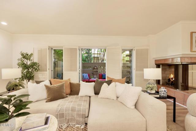 NO OPEN HOUSE SUNDAY 3/29! A Study in Mid-Century Modern Set quietly at the rear of a classic South Orange Grove enclave, this single-level residence reflects the enduring principles of mid-century modern architecture: clarity of design, effortless flow, and a deep connection to the outdoors.Clean horizontal lines and an open, intuitive floor plan create a sense of calm from the moment you enter. The main living space unfolds with purpose, anchored by a period fireplace and framed by walls of glass that dissolve into two private patios. Light, air, and garden views become part of the architecture itself, itself an essential hallmark of the era.The great room has a living and dining area that open to the private patios. The adjacent kitchen with breakfast bar flows into the family room, integrated yet distinct, offering flexibility. Privately situated, the primary suite is a quiet retreat-generous in scale, with direct access to its own secluded patio, where the indoor-outdoor dialogue continues. The large walk-in closet & ensuite bath are good sized. The laundry is tucked away on the enclosed patio. The second bedroom is thoughtfully set apart, allowing for guests, a workspace, or creative use without compromise.What sets this residence apart is not only its rare single-level layout, but the way it lives: uncomplicated, intentional, and connected. Two outdoor spaces extend the experience beyond the walls, while the tranquil setting enhances the sense of privacy and retreat.Nearby is the glorious pool with separate full sized cabanna that can be reserved for private parties. Complete with kitchen, living & dining area plus a library & 3/4 bath, this extends the living space beyond the unit itself. Separate HVAC and water heater are easily. accessible. The complex has excellent management. There are two parking places for this unit: one is covered and includes storage while the second is uncovered. Ease of access off Columbia. This is mid-century modern living as it was meant to be: refined, functional, and timeless.