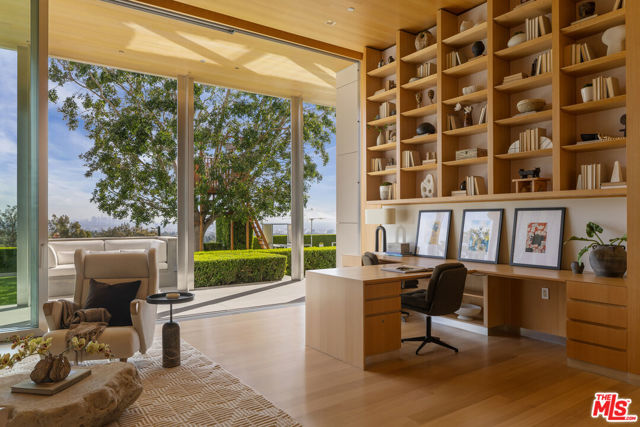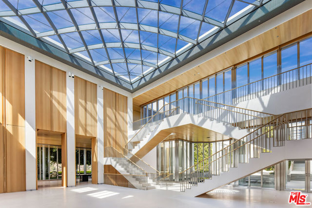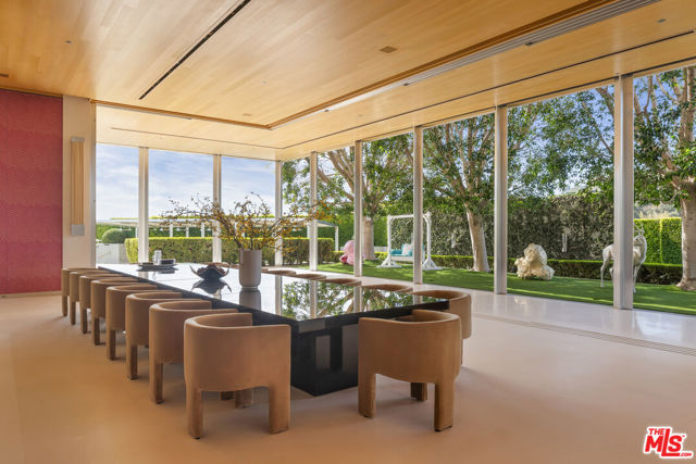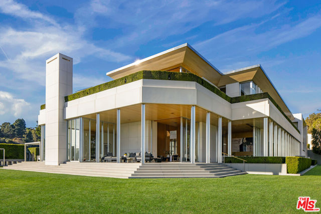The Angelo Estate, designed by famed master architect, Ed Tuttle. The most spectacular contemporary estate in Los Angeles, truly one of the great estates in all of America. Perched on a 6-acre view promontory with unobstructed views across the entire Los Angeles basin from downtown to the ocean. Enter through a long gated private driveway to this museum quality stunning architectural masterpiece comprised of steel, glass, and limestone with onsite parking for 80-100 cars. The main house is built around a magnificent open courtyard with fountains. Enter an atrium foyer filled with natural light and reminiscent of IM Pei's Louvre installation. There are high ceilings and great walls for art throughout, a beautiful living room, formal dining, library, chef's gourmet kitchen, great room, incredible theatre, game room, bowling alley, wellness center, gym, wine cellar, and much more. Built by McCoy Construction with meticulous detail and perfection, there was no expense spared and no detail overlooked. All exterior walls are made of imported Italian limestone, while the interior walls and ceilings feature either the same limestone or rift-cut vertical grain white oak. The estate also includes state-of-the-art electronics and security with a security room. The house is heated and cooled by geothermal technology and has solar panels and a generator. Spectacular grounds include a green marble tiled infinity pool and spa, a full outdoor kitchen, a lighted tennis court and pavilion, stunning lawns, walkways, and gardens. There is a full 2-story 2-bedroom guest house and a separate guest apartment. The home is on a peninsula, not only ensuring privacy but opening to possibly the best view in all of Los Angeles. 16 bedrooms, 27 bathrooms, 18 fireplaces. This home is a true wonder, there is nothing else like it, and impossible to duplicate. Be sure to look at both interior and exterior photos, along with the dramatic drone shots on the property website. Shown to pre-qualified clients only.