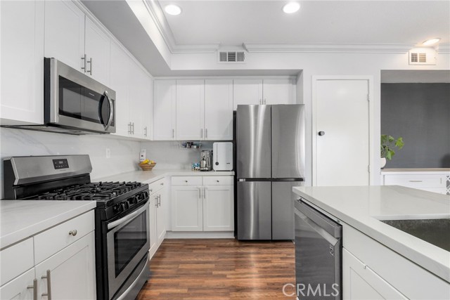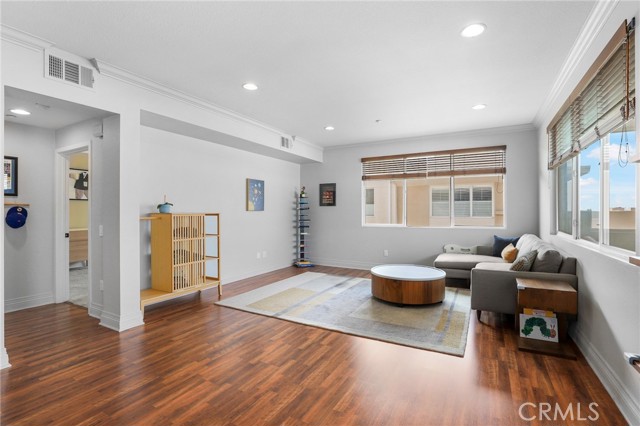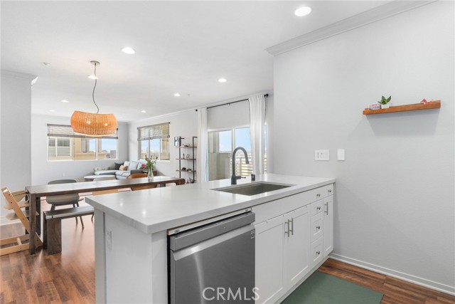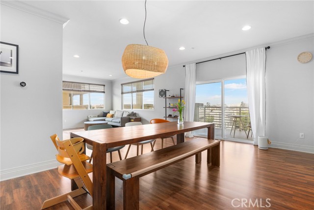 Top floor, 1,326 square foot, one level condo in "The Flats" of Three Sixty South Bay! The spacious kitchen has been upgraded with quartz counters, stainless steel appliances—including a newer Samsung refrigerator and LG dishwasher—and plenty of storage. Both the dining and living areas boast views out over the rooftops to the west. Beautiful sliding glass doors open to the balcony - the perfect place to enjoy coffee or tea and evening sunsets. The bedroom suite has south-facing windows and an ensuite full bathroom featuring dual vanities with quartz counters. Walk in closet. In unit laundry has also been upgraded with an LG stainless steel washer and dryer unit. Central HVAC & dual pane windows. Come home to a private, two-car tandem garage deep enough to accommodate a storage area. Elevator access makes reaching the top floor easy. Three Sixty South Bay offers many perks: two sparkling pools, a top-tier fitness center, sports courts, scenic walking paths, dog parks, a community lounge, a grilling area and on-site security. The grounds and trees and common spaces are expertly maintained. Located within The Wiseburn Unified School District, just minutes from Manhattan Beach, El Segundo, Redondo Beach, LAX, the new home of the LA Sparks, LA Air Force Base, Space Force and multiple tech companies of Silicon Beach.