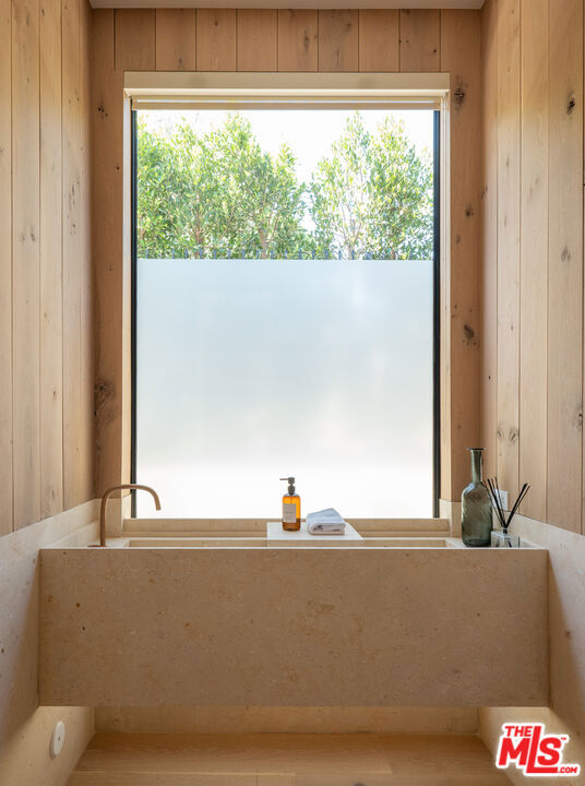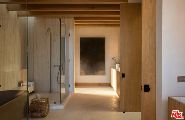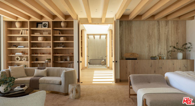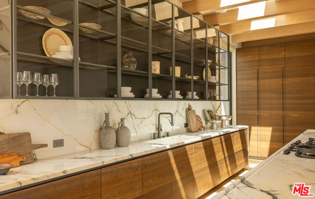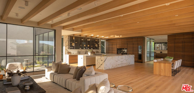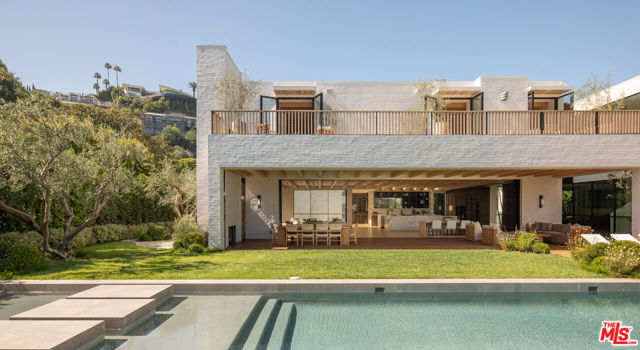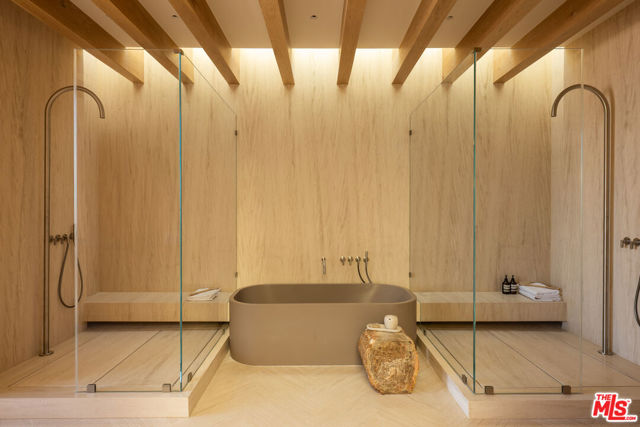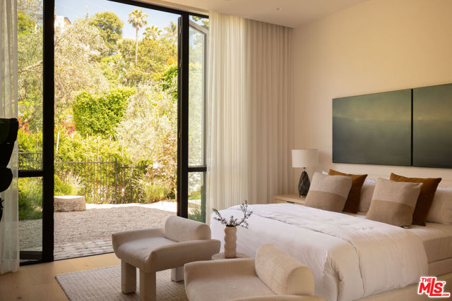 "FIVE FATHOMS"- The latest creation by celebrity designer Jae Omar and architect Eran Gispan, is a residence of lyrical beauty and organic architectural reverence. Set on a sprawling 20,000 square foot lot, this 9,800 square foot residence unfolds across five distinct structures, thoughtfully connected by glass-encased walkways that 'float' over meandering waterways. The interior aesthetic showcases Omar's signature 'organic modern' approach, featuring a textural symphony of sandblasted stone, vanishing walls of glass, and meticulously crafted white oak accents that converge in perfect harmony. The primary suite stands as a singular retreat, complete with a private library, a vast deck, and an ethereal stone-wrapped bathroom that is cloaked in natural light from strategic skylights that continue into the custom walk-in closets. Additional features include ADU, conceived as a serene wellness retreat, a 65-foot swimming pool adorned with a grand spa and cold plunge, expansive cobblestone terraces, multiple outdoor fireplaces, a fully equipped alfresco kitchen, state-of-the-art Dolby theatre and a cutting-edge security system with voice-activated infrared technology. 'FIVE FATHOMS' - A legacy of contemporary design and luxury living!