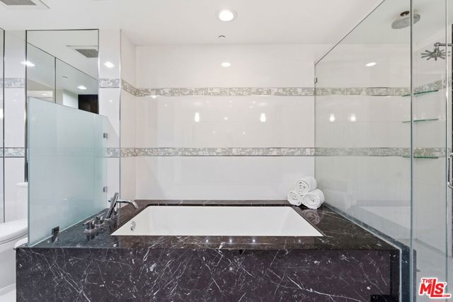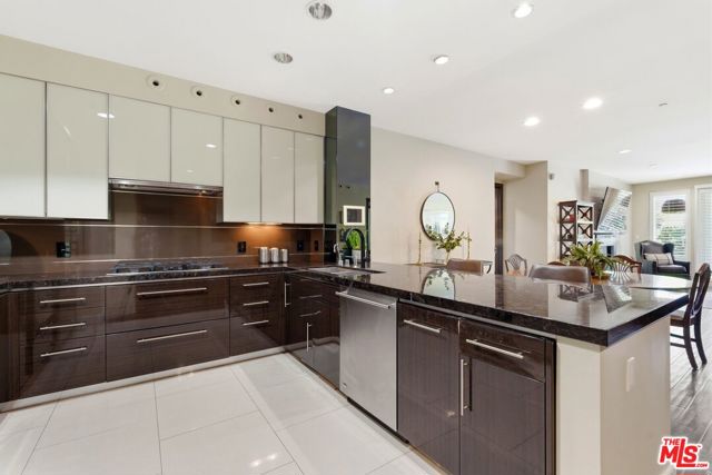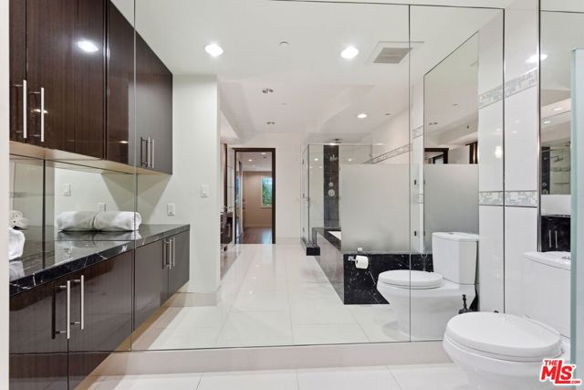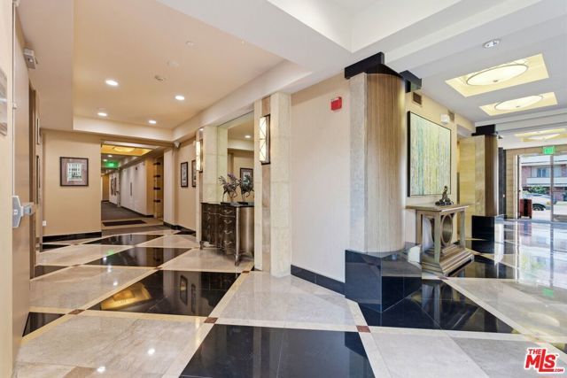 Welcome to your modern 2BR/2.5BA condo located in the Art Deco-inspired Roxbury Place building just steps from Beverly Hills. This spacious 1,991 sq. ft. west-facing first-floor residence features excellent natural light, nine-foot ceilings, and designer finishes throughout. Interior features include dark hardwood floors, recessed lighting, and an open-concept living and dining area that leads to a private tree-lined balcony. The kitchen offers granite countertops, bar seating, and ample cabinet space. The two primary bedroom suites are situated on opposite sides of the living area for privacy, and each includes a spacious en-suite bathroom with dual vanities. The larger primary bathroom features a soaking tub and separate shower. Additional features include a gallery-inspired entry hall, powder room, large storage closet, and in-unit laundry. Building's luxury amenities include concierge service, fitness center, and outdoor lounge area. HOA dues include earthquake insurance. Conveniently located approximately one mile from Roxbury Park and just minutes from the shopping, dining, and entertainment along Rodeo Drive, South Beverly Drive, and the business district of Century City.