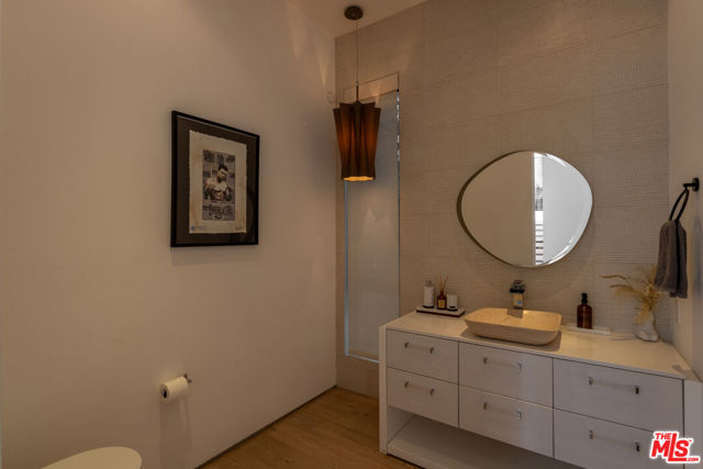 Located in the heart of Beverly Grove, this modern home offers a great mix of style, comfort, and space. With about 4,000 square feet, it features 5 bedrooms and 6 bathrooms - all en suite - giving everyone plenty of privacy. Willing to sell furnished or unfurnished. Inside, you'll find soaring ceilings and a striking floating staircase that add to the open, airy feel. The kitchen is fully equipped with high-end appliances, perfect for cooking or entertaining. The living room, complete with a fireplace, opens smoothly to the backyard, creating an easy flow between indoor and outdoor spaces. The backyard is a true retreat, with a saltwater pool, spa, mature landscaping, and plenty of room for relaxing or hosting. There's also an outdoor fireplace and TV area that make it a great spot to unwind with friends or family. The master suite stands out with its own fireplace, walk-in closet, sundeck, and a luxurious bathroom with Porcelanosa finishes. The home is also outfitted with smart technology and solar panels for energy efficiency. This gated property offers both privacy and convenience, just minutes from The Grove and the Sunset Strip - some of LA's best dining, shopping, and entertainment. If you want a stylish, comfortable home with plenty of room to live and entertain, 132 N Laurel Ave is a wonderful choice.