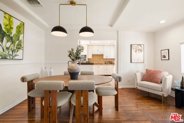 Beverlywood Adj classic Spanish home offering hardwood floors, charm, and a sweet private backyard with a mature lemon tree. This 2 BD | 1.5 BA residence showcases wood-beamed ceilings, arched walkways, and a character-filled living room with fireplace (fire is AI generated). A formal dining room sits just off the kitchen, creating an easy flow for everyday living and entertaining. One of the two spacious bedrooms includes a convenient half bath which is ideal for guests or perfectly suited as a private home office. The oversized main bathroom features a separate tub and shower with generous square footage, presenting an excellent opportunity for a custom renovation. A second rear entrance off the kitchen provides direct access to the driveway and detached garage with washer & dryer, adding everyday convenience. A rare opportunity to own a charming Spanish with room to personalize in a prime, central Westside location that's only a few blocks from Beverly Hills and within walking distance to Pico shops, restaurants, and houses of worship. Zone R3 (Multiple Dwelling Zone)