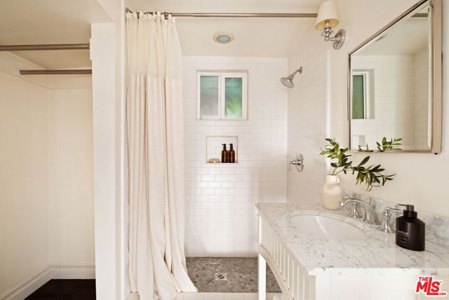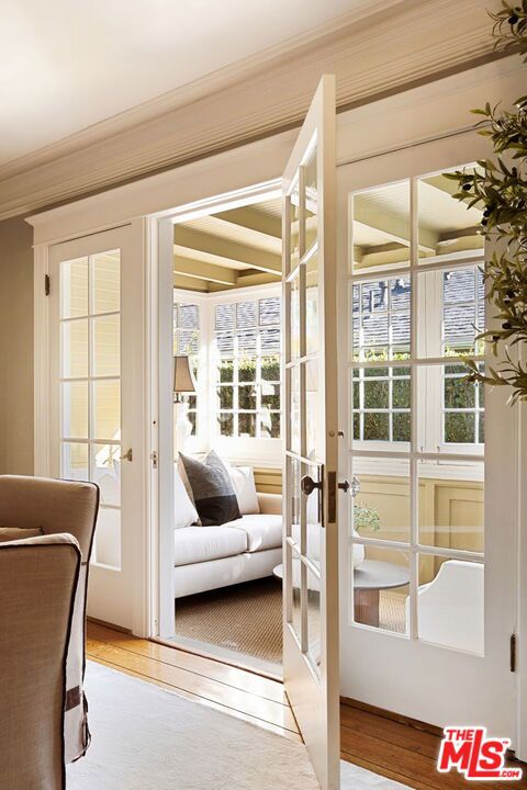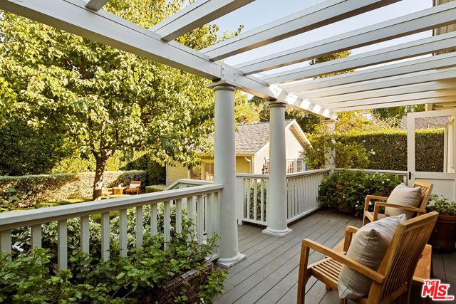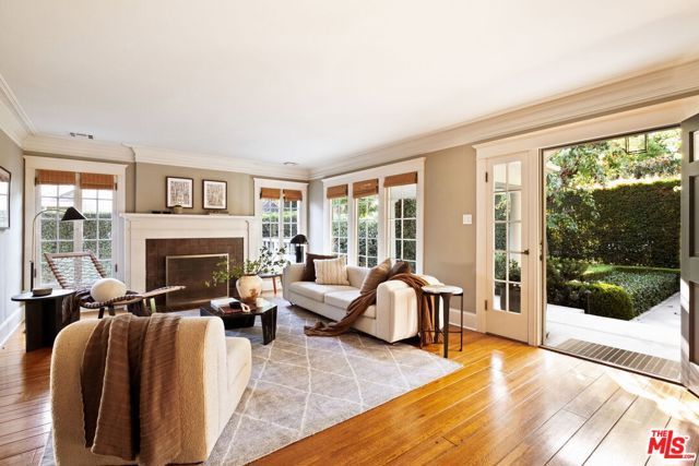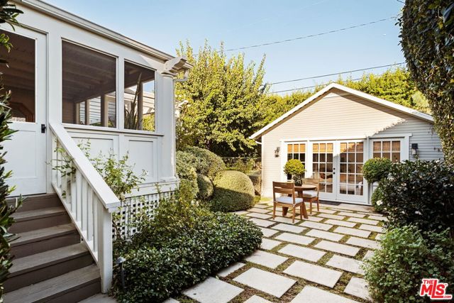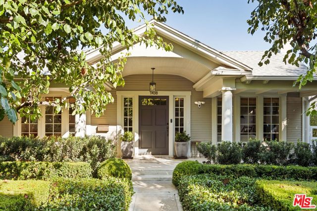 Nestled in the heart of Sunset StripHollywood Hills West, 1438 North Orange Grove is a beautifully preserved Craftsman bungalow that seamlessly blends timeless architecture with modern luxury in Historic Spaulding Square (HPOZ). A gated hedged entry opens to a lush garden oasis framed by manicured boxwoods, mature trees, and white roses creating a tranquil escape from city life. Inside, natural light fills the formal living room, which opens to a versatile office and guest bedroom ideal for hosting visitors or working from home. The elegant dining room flows effortlessly into a bright sitting area, perfect for morning coffee or quiet reading. The home offers 3 bedrooms and 2 bathrooms, including a serene primary suite with marble finishes, a walk-in shower, and generous closet space. The chef's kitchen impresses with a premium Wolf range, marble countertops, stainless steel appliances, and built-in banquette seating. A charming sunroom leads to the private backyard retreat, featuring a grassy lawn, patio, and a detached studio with its own bath ideal for guests, a creative workspace, or an in-law suite. With refined design, lush landscaping, and an unbeatable location, this Spaulding Square gem captures the perfect balance of historic character and contemporary living.