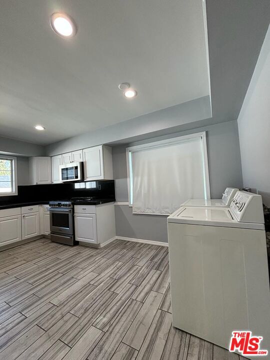 This beautifully renovated three-bedroom, two-bathroom home is available for rent in the desirable neighborhood of Panorama City. This residence features a bright and spacious open-concept living area with recessed lighting, large sliding glass doors that provide ample natural light, and elegant wood-look tile flooring throughout. T