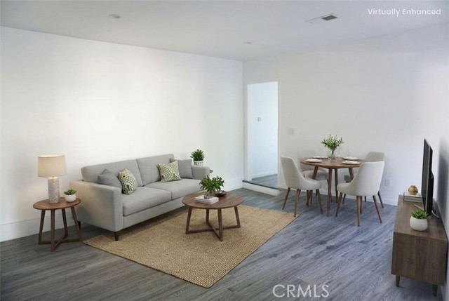 Charming rear ADU/guest house with a private, gated entrance. This well-designed 2-bedroom, 1-bath residence offers approximately 705 sq ft of living space and an open-concept floor plan. Features include engineered flooring throughout, a spacious kitchen with white cabinetry, stainless-steel appliances, recessed LED lighting, and dual-pane windows with custom blinds. The home is equipped with a newer HVAC system and convenient indoor stackable laundry hookups. The bathroom is generously sized and showcases custom tile work along with a spa-like feel, featuring a luxurious dual rain shower system. Separate electrical and gas meters. Wi-Fi is included in the rent. Street parking only. Sorry no pets!