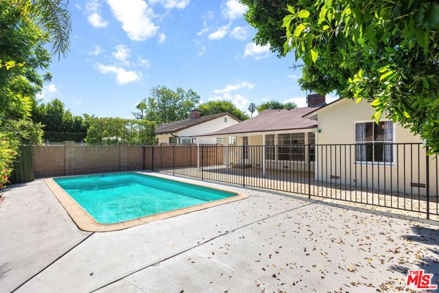 Set along a serene, treelined street in the coveted Hesby Oaks School district, this stunning midcentury ranch-style gem invites you to live the classic San Fernando Valley dream. Crafted by the celebrated architect William Mellenthin, this home showcases the very charm and durable craftsmanship he's famed for; from its open-beam ceilings and a dramatic two-sided brick hearth to its expansive walls of glass that bathe the home in radiant California sunshine. This home features freshly refinished oak floors in the living areas and brand-new flooring in the kitchen and baths with rich, lath-and-plaster walls that recall the home's authentic midcentury roots. The light-filled living room, graced by giant picture windows, offers a soothing view out to the covered patio that overlooks a private backyard oasis complete with a pool. Storage is plentiful throughout the home; with ample cabinetry, several closets, and a spacious laundry room. Recent enhancements include a brand-new water heater, upgraded toilets and bathroom fixtures, a fresh roof recoating, and updated light fixtures, all completed in the last few months. In addition, the plumbing system was overhauled just two years ago. Families will appreciate that this home is within the Hesby Oaks attendance zone, a top-performing K8 school ranked in the top 10% statewide. Everyone will appreciate the location: within a half-mile of countless shops, restaurants, and stores--including the Sherman Oaks Galleria--and within a mile of many more. All with swift connections to two major freeways that allow you to drive to LA's Westside in minutes and beyond. Public records show two bedrooms but the home has 3, buyers to verify.