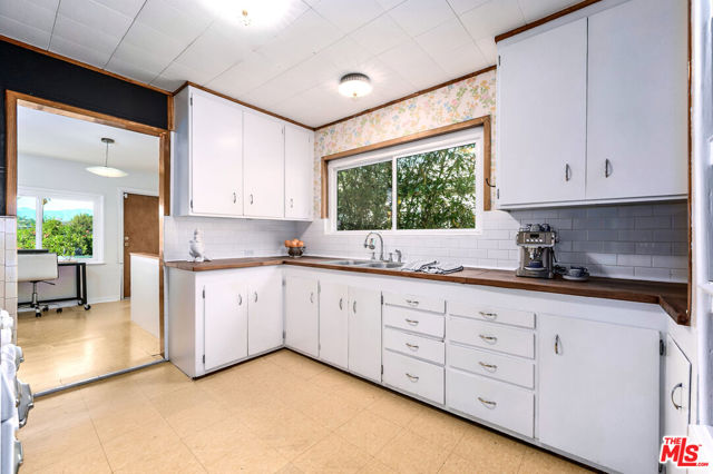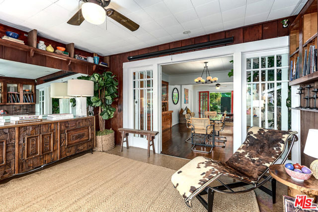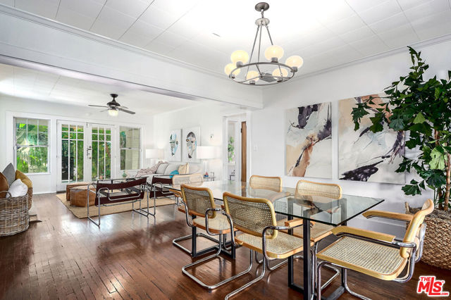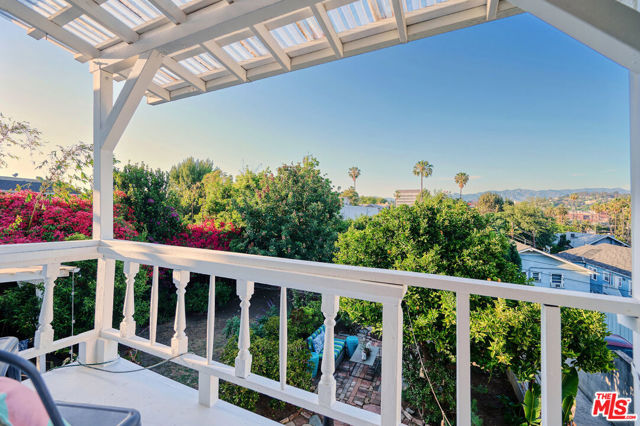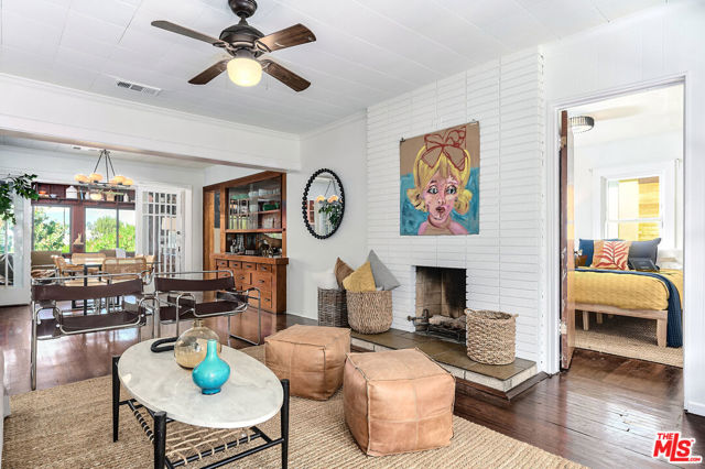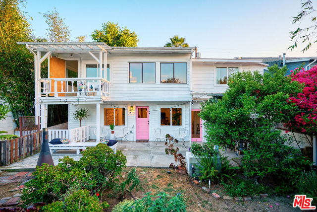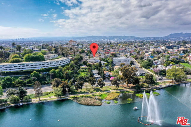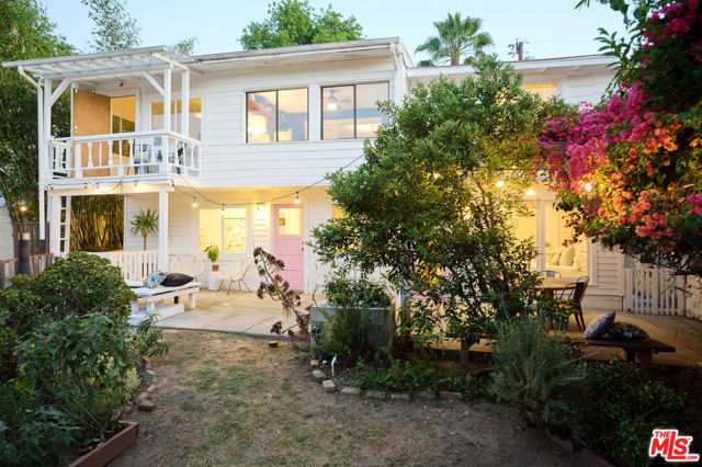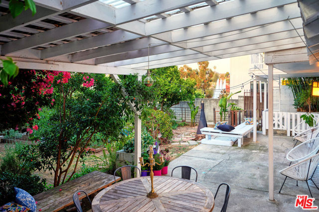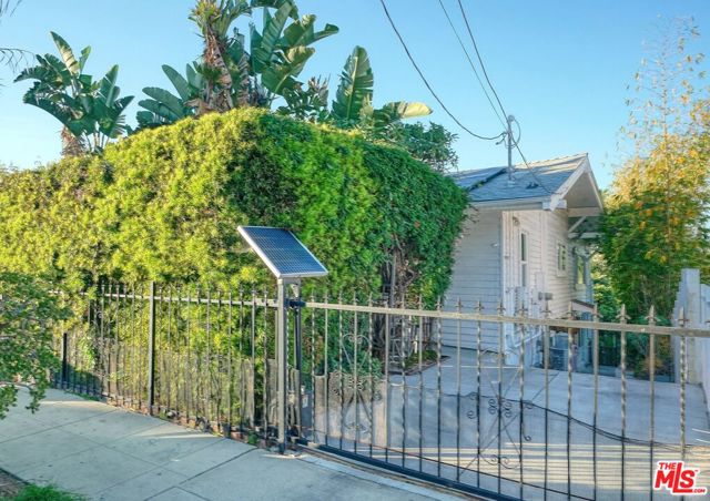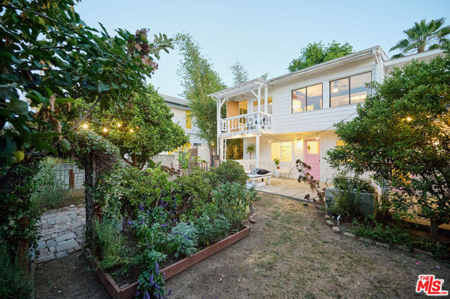 Perched above the city with cinematic views, this Echo Park retreat is for the tastemaker who values both vintage character and modern flexibility. This hillside bungalow compound unfolds across two complete levels each with its own kitchen, living, dining, and laundry offering the freedom to evolve with you through every phase of life. The upper level features four bedrooms plus an office, while the lower level offers two bedrooms, an office, and a dressing room. This layout is perfect for multi-generational living, a home studio, or the ultimate guest retreat. Period details like brick archways, built-in cabinetry, colorful tile, and even preserved vintage wallpaper layer warmth and authenticity throughout, while oversized windows frame ever-changing views of the San Gabriel Mountains and Echo Park's iconic fountains. Outdoors, this property is its own magic garden: mature fruit trees (orange, avocado, apple, fig, lemon, lime, and kumquat), a chicken coop, and multiple patios and lounge spaces under bougainvillea create endless opportunities to gather, play, or unwind. A detached shed currently serves as a gym, adding yet another flexible space, and a tall privacy hedge in the front ensures the home feels like a world apart. On weekends, the location truly shines: stroll up to the Silverlake Flea, grab a sunlit lunch at Honey Hi, circle Echo Park Lake, then settle in for dinner at Men & Beasts or cocktails at Taix, with Donna's and Lonely Oyster just minutes away. Here, you're surrounded by the very best of the Eastside while still feeling tucked away in your own private retreat. This property is zoned R2, with additional upgrades including gated tandem parking for two, solar panels, a new exterior sewer line, fresh interior paint, and the convenience of dedicated laundry on both levels. This is quintessential Eastside living: soulful, spacious, and endlessly adaptable, a place to share and entertain, to be the hub for your friends and family for many years to come.