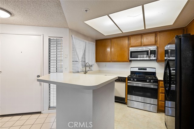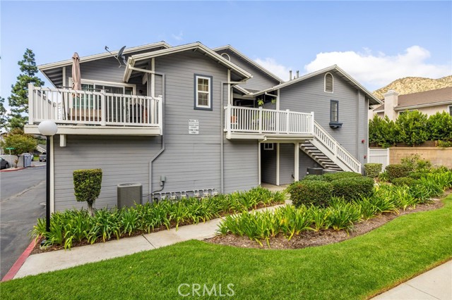 Upstairs Unit in the Desirable Crystal Canyon Community of North Azusa. Welcome to the beautifully maintained Crystal Canyon community in North Azusa, where manicured landscaping and mature trees set the tone for tranquil living. This upstairs unit features a spacious, covered front patio—perfect for morning coffee or evening relaxation. Step inside to a bright, open floor plan with tiled flooring at the entry and into the kitchen, which offers warm wood cabinetry, stainless steel appliances, and a peninsula with bar seating. The adjoining family room features carpeting, vertical blinds, and a sliding glass door that opens to a private balcony. The primary suite includes a private slider and an ensuite bathroom, offering both comfort and convenience. A second bedroom and a full hall bathroom complete the layout. Enjoy resort-style amenities including a sparkling pool and spa, tennis courts, and wide-open green spaces with expansive lawns and mature shade trees, all within this well-maintained community.