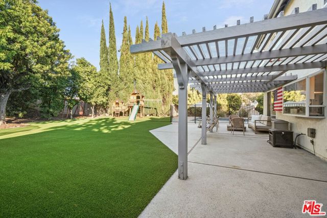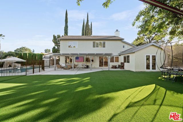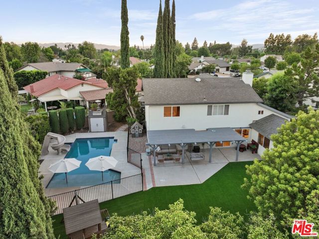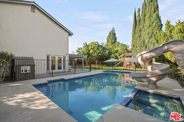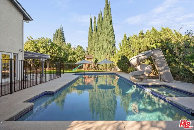 Discover Your Dream Family Home! Step into this turn-key masterpiece, a must-see gem that's perfectly tailored for growing families with young children and busy parents alike. Once you come, you will fall in love with this Pottery Barn like family retreat. Nestled adjacent to the Northridge community, this bright and airy home welcomes you with an effortless charm that feels like it was designed just for you complete with thoughtful spaces that nurture family bonds, spark creativity, and make everyday life a little more magical.As you enter, the open-concept unfolds seamlessly, blending living spaces with modern elegance that's ideal for family movie nights or gatherings. Fully renovated from top to bottom with tasteful finishes, this home boasts new luxury floors throughout that are durable enough for active little feet, a renovated kitchen equipped with ample counter space for baking cookies with the kids, and all bathrooms redone with spa-like sophistication that include easy-to-clean surfaces for hassle-free mornings. Every bedroom has been thoughtfully refreshed, offering cozy retreats for rest and rejuvenation, including built-in storage solutions perfect for organizing toys, books, and family keepsakes.The heart of the home is the huge living room with natural light, creating an inviting atmosphere for storytelling sessions or holiday celebrations. Adjacent to it, a versatile playroom provides endless possibilities for fun and relaxation, whether it's setting up a fort for imaginative play or hosting playdates with neighborhood friends. But the real magic for families lies in the kids' special space a generous 250-square-foot bonus area (not included in the official square footage) that cleverly connects the children's rooms to the master suite. This upstairs haven, currently transformed into a delightful kids' dressing room and playroom, serves as a hidden oasis where little ones can try on costumes, stage dress-up adventures, or simply unwind with their favorite toys. With a cozy reading nook and easy access between the kids' bedrooms and your private master retreat, it's the ultimate bridge between family fun and parental peace perfect for bedtime stories or quick check-ins without leaving your sanctuary.Outside, paradise awaits with a redone swimming pool featuring premium Pebble Tec surfacing for a smooth, luxurious feel that's gentle on young swimmers. Dive into the oversized Baja shelf, complete with two built-in umbrellas the ultimate spot where kids can splash and play for hours, wading safely in shallow waters while you relax nearby. A plumbed-in water slide adds an exhilarating twist for family pool parties and is sure to be a kids' favorite. The new iron gate encircling the pool ensures peace of mind and safety with child-proof latches. The backyard is a low-maintenance wonderland designed for endless family adventures, featuring synthetic turf that's USA-made and PFAS-safe for worry-free play, soft padding beneath the turf under the playground area to cushion tumbles, and mature fruit trees dotting the landscape where kids can pick fresh snacks during outdoor explorations. Lush, well-maintained privacy foliage creates a secluded retreat for barbecues or quiet family picnics. The front of the home is enhanced by new front iron gates framed with artificial hedges for added curb appeal and seclusion (including those Amazon delivery drivers)keeping the outside world at bay so you can focus on what matters most: your family.Climate control is effortless with a new AC system and new hot water heater.This is more than a home it's a dream family sanctuary, where every detail has been curated for joy, convenience, and lasting memories, from the kid-centric upstairs dressing room to the backyard playground paradise. Just moments from top-rated schools like Sierra Canyon, Egremont, and Chaminade, don't miss your chance to make it yours! CLICK on the Virtual TOUR link for a full video.