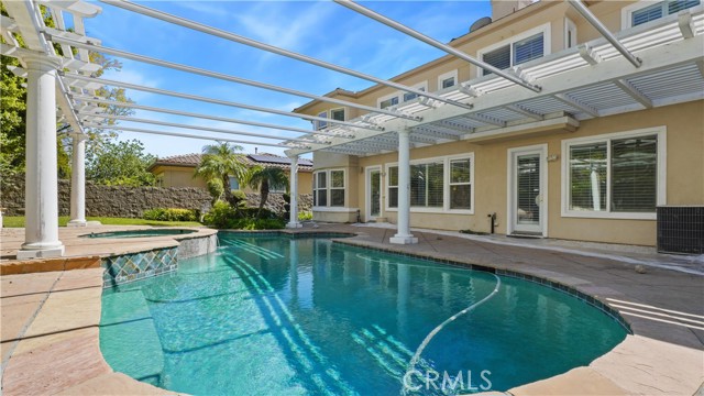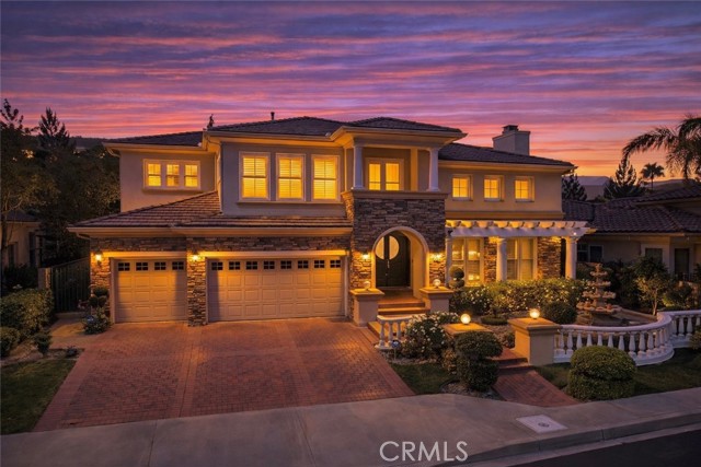 Well-maintained, luxury home5-bedroom, 5.5-bathroom residence located in the highly coveted Renaissance community of Porter Ranch. Built in 2003, and spanning 4,721 square feet, this elegant home offers timeless design and a prime location within a 24-hour guard-gated enclave. The home features a refined transitional style with tasteful updates, including contemporary lighting and carefully selected finishes throughout. The gourmet kitchen flows seamlessly into the generous living room and den. The expansive primary suite serves as a true retreat, offering a spacious sitting area and a rare built-in gym within the primary bathroom. Sparkling Pool, Spa and outside fireplace ideal for relaxing. A 3-car garage adds both functionality and ample storage space. As a resident, you'll enjoy resort-style amenities including a community tennis court and meticulously landscaped common areas--all within a secure and tranquil setting.