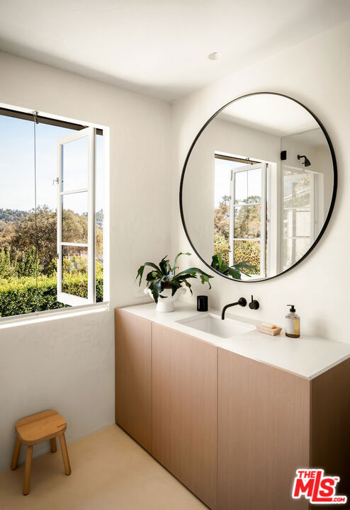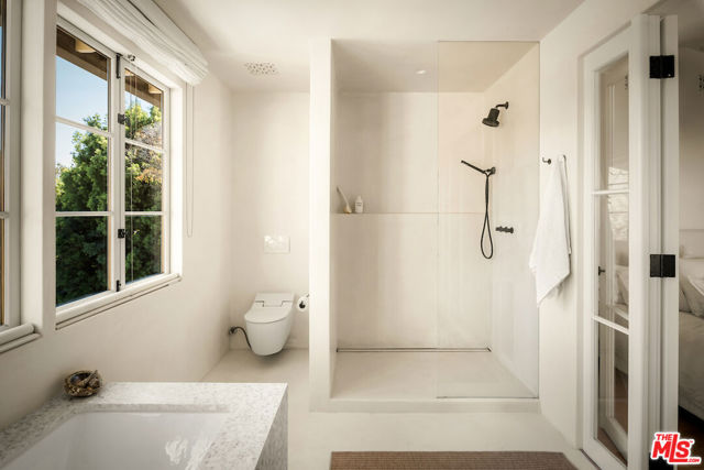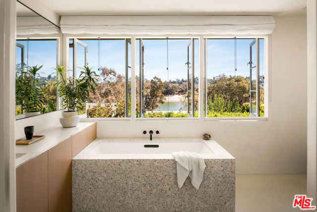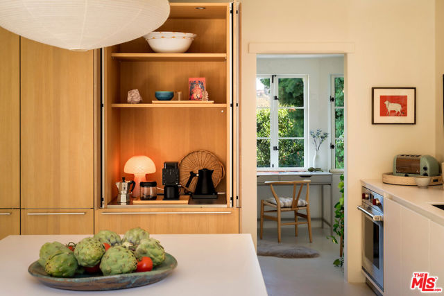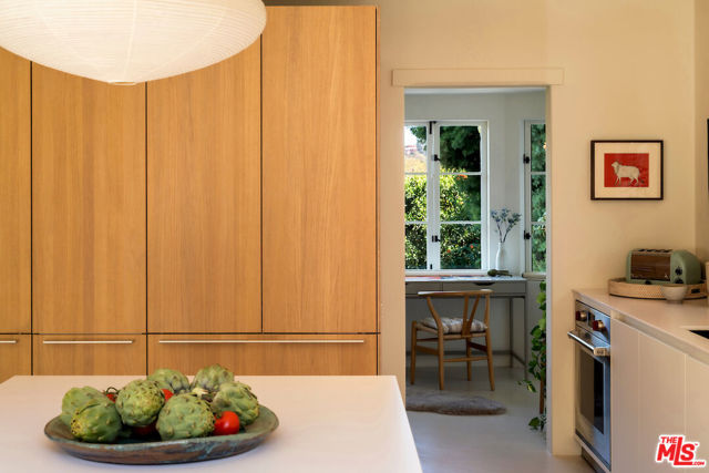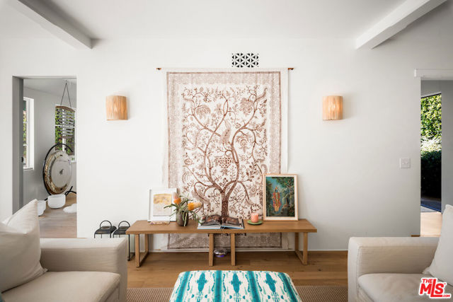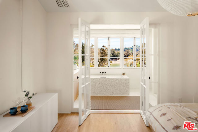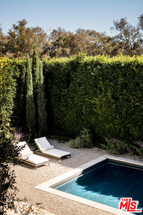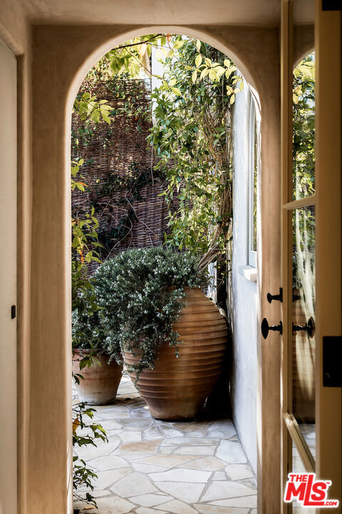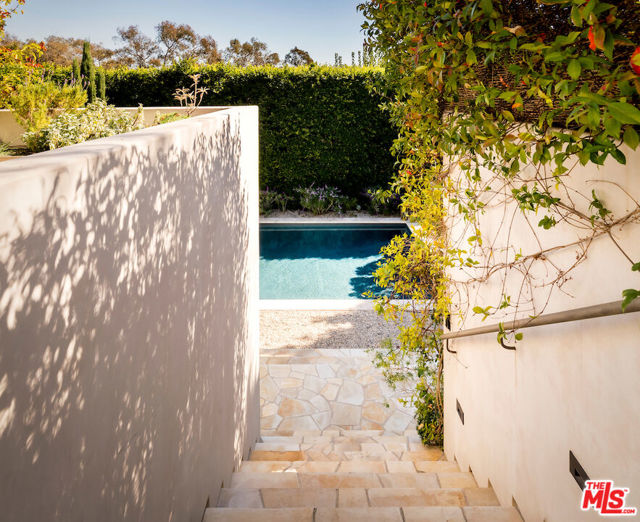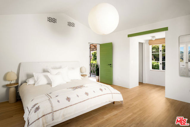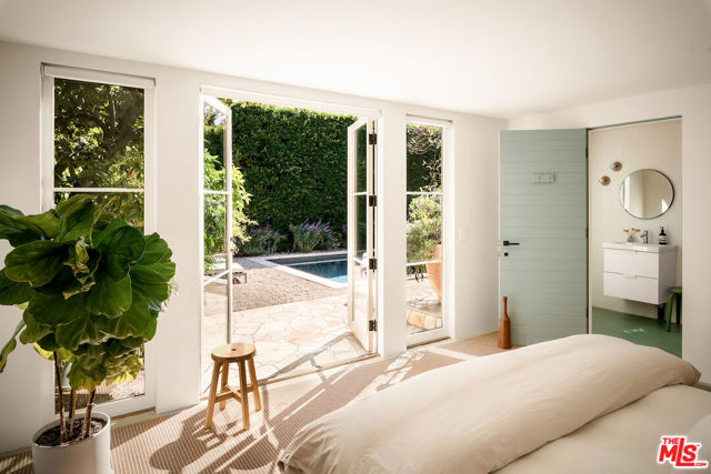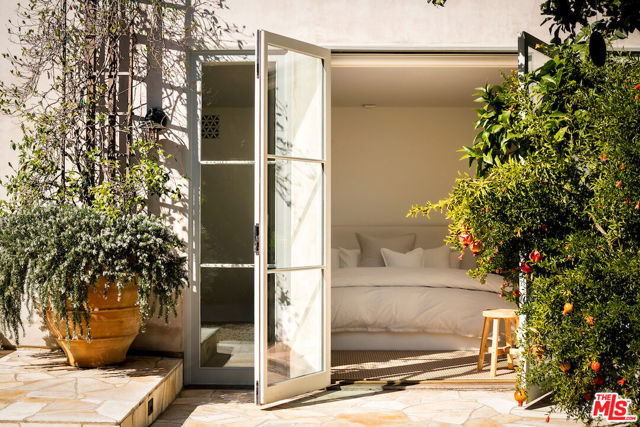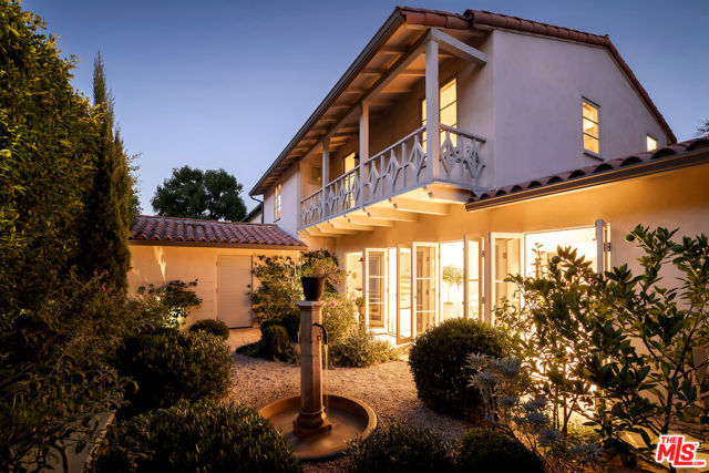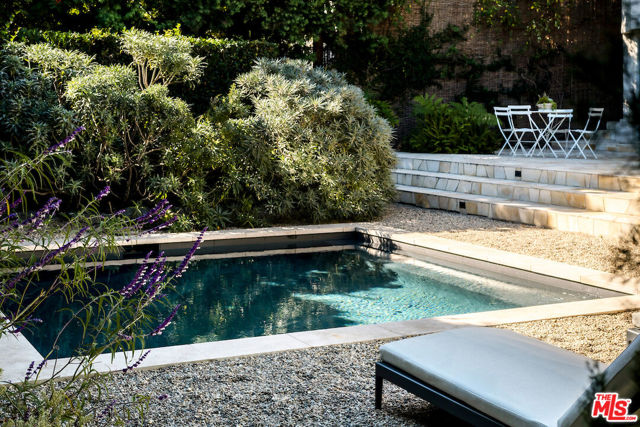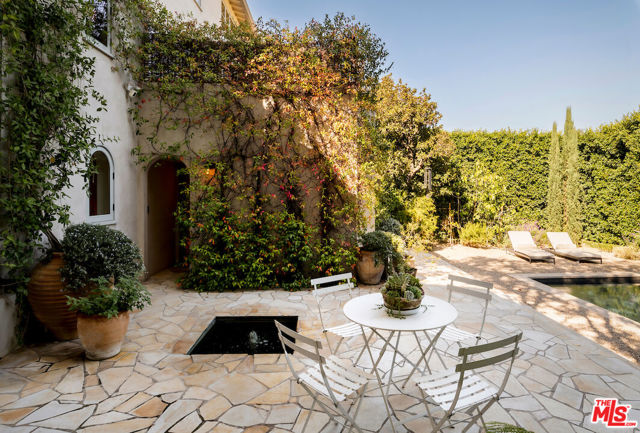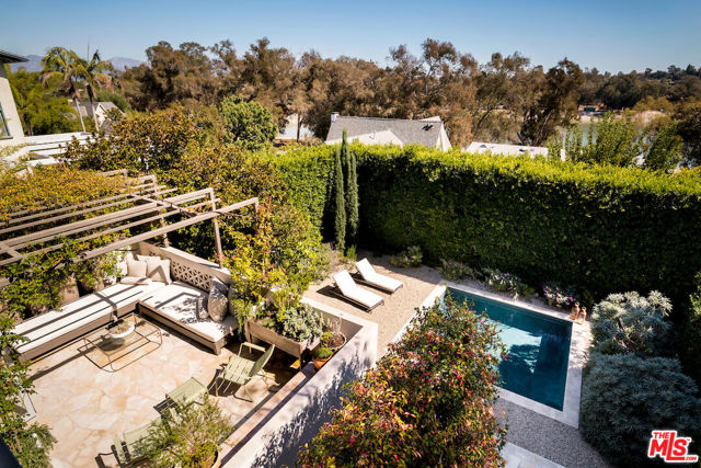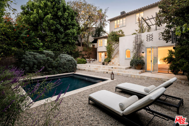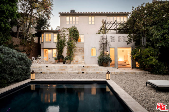 Any and all offers will be reviewed on the afternoon of Friday, October 24. A Mediterranean Escape in Silver Lake's Moreno Highlands! Just moments from the Reservoir, this exquisitely renovated 1933 Monterey Colonial home offers 4 bedrooms and 4 bathrooms, masterfully blending modern design with timeless warmth and charm. A true private compound, the property is fully hedged and fenced for ultimate privacy. Step through the front gate and into a romantic courtyard garden with a trickling antique fountain, an enchanting secret oasis that feels worlds away, reminiscent of the South of France. Designed for effortless indoor/outdoor living, French doors from the kitchen and dining room open to the garden, while a covered second-floor balcony overlooks the serene grounds. The flat backyard is an entertainer's dream, featuring a stunning pool, patio, and fountain, perfect for dining al fresco or soaking in the sun. Inside, the home is a designer's work of art, showcasing a Bulthaup kitchen, plaster walls, vintage ironwork, California Faucets, Merit hardware, marble terrazzo, and exposed beam ceilings. Every window is custom-made by TM Cobb, complementing the high-end appliance suite that includes a Miele refrigerator and dishwasher, Wolf oven and cooktop, center island, and a coffee station that tucks away out of sight. The generous primary suite offers a luxurious retreat with vaulted ceilings, dual walk-in closets, and a breathtaking spa-like ensuite bathroom finished in marble terrazzo and tadelakt plaster. Modern comforts include solar power and a Life Source whole-home water filtration system, combining sustainability and wellness with classic architectural beauty. Ideally located in the Ivanhoe Elementary school district and moments from Silver Lake favorites like L&E Oyster Bar, Bar Siesta, La Mill Coffee, and the Silver Lake Reservoir, this property is a rare architectural gem in one of Los Angeles's most sought-after neighborhoods. Constructed with mindful craftsmanship and intention, crystals were placed throughout during renovation to promote clarity, calm, and connection, creating a sanctuary that nurtures serenity and peace.