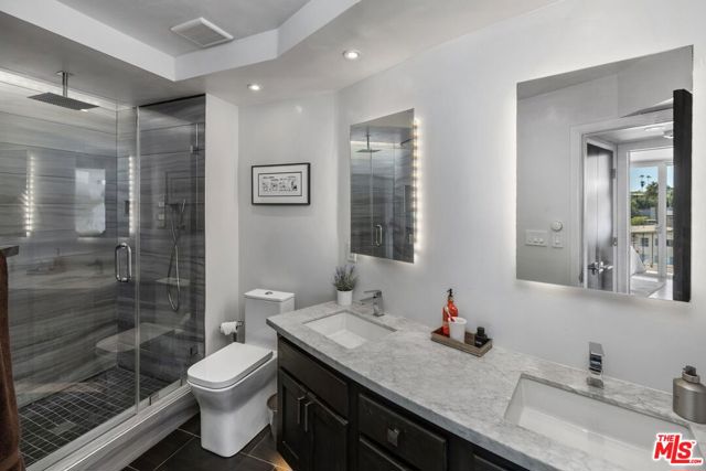 A fantastic opportunity for both buyers and investors to own a beautifully remodeled condominium located at the base of the Hollywood Hills. This bright and sunny two bedroom, two bathroom residence features an open floor plan with a spacious dining and living area, hardwood floors, and central air and heating for year round comfort. The remodeled kitchen is thoughtfully designed with striking green Ann Sacks tile, white granite countertops, generous built in cabinetry, and stainless steel appliances. Sliding doors lead to a private balcony, ideal for al fresco dining or relaxing while enjoying the city lights. The primary suite offers serene views of the Hollywood Hills along with a large walk in closet. The primary bathroom has been tastefully remodeled with Porcelanosa ceramic tile in the shower, a Porcelanosa European style toilet and mirror, and a marble countertop with floating dual sinks. The second bedroom suite is perfect for a roommate, guests, or a home office, and is complemented by a second bathroom featuring a custom granite countertop and Porcelanosa tile in the shower.The unit is conveniently located near Hollywood's vibrant nightlife and restaurants, as well as Los Feliz and Silver Lake, with easy access to local freeways. Nearby amenities include The Oaks Market, Daily Planet Bookstore & Coffee Shop, Gelson's, Bristol Farms, Trader Joe's, and iconic destinations such as the El Capitan and TCL Chinese Theatres. Outdoor enthusiasts will appreciate close proximity to hiking trails at Bronson Canyon, Fern Dell Nature Trail, the Hollywood Reservoir, and Griffith Park. Building amenities include a heated pool, bike storage, barbecue area, and lounging deck. The HOA covers water, trash, gas, and AC electricity. The recently increased HOA fee reflects higher insurance costs and completed balcony retrofitting. This condo may be purchased furnished and offers excellent potential as an income investment. A rare gem with comfort, style, and location.