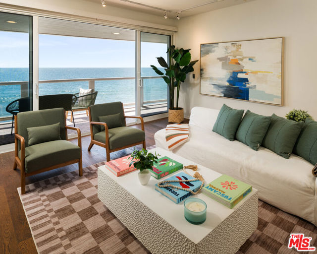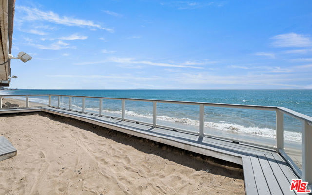 Experience the pinnacle of coastal luxury in this rare 2-bedroom, 2-bath oceanfront residence on exclusive Carbon Beach (Billionaire's Beach). Nestled next door to Nobu Malibu, Little Beach House Malibu (Soho House), and just steps from the historic Malibu Pier, this home offers unparalleled access to the sand, surf, and celebrity-favored dining and social scene. Step onto your private beachfront deck, where the Pacific crashes just beneath you and panoramic views sweep along the Santa Monica coastline. The deck seamlessly flows into a bright, sun-drenched living room perfect for entertaining or quiet evenings by the sea. Adjacent is a beautifully updated kitchen featuring top-of-the-line stainless steel appliances, ideal for effortless coastal living. The spacious primary suite boasts a generous walk-in closet and a luxurious en-suite bath with a separate shower and soaking tub. Additional highlights include a gated, oceanfront community, in-residence laundry, and a two-car tandem garage for secure, convenient parking. This turnkey beachfront gem delivers the ultimate Malibu lifestyle, don't miss your chance to own a piece of this legendary shoreline.