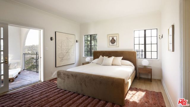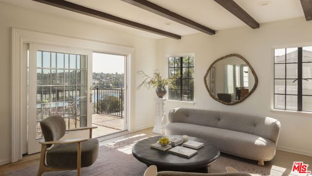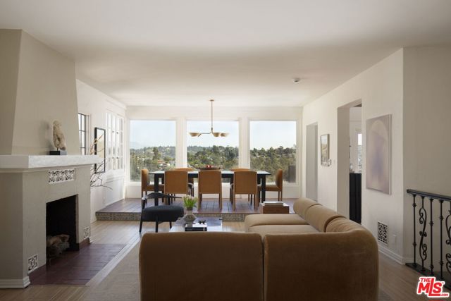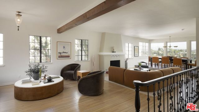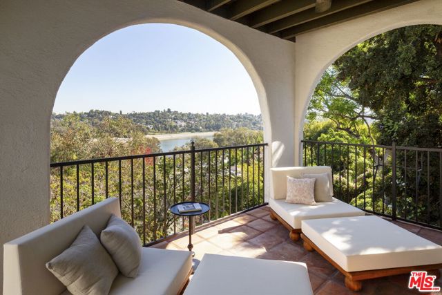 Historic Country English Home with Panoramic Silver Lake Reservoir Views. Tucked away on one of the Moreno Highlands' most prestigious streets. This quintessential Silver Lake home offers a rare opportunity on the Lake-facing side of Moreno Dr, at the perfect elevation - where all the home is filled with natural light and inspirational views. Though this is a view home, it is flat when you enter from the street level (and it's also a very flat easy-to-walk street!). Front of house has privacy gates and 2 car garage attached with direct entry into your home. The classic period details have been well-restored and intact: including peg-and-groove oak hardwood floors, classic steel casement windows, rustic exposed wood beams, and ironwork details throughout. Primary suite features its own private balcony with direct views of the Reservoir. The bathrooms feature updated or original art deco tile work. Kitchen is functional and open - perfect for modern living. Multiple balconies and patio access throughout - and exterior access on all 3 levels. Yard is newly refreshed - highlighting its privacy and large backyard size. Mature trees all around, including 60+ year old shade trees and an orchard of new citrus trees. Home could be great for those who want large space, including good bedroom count - and versatility to use lower level as potential future rental or a studio/office. Classic Angeleno architecture on a quiet gas-lamp lit street. Life here will surely incorporate peaceful walks along the Reservoir - as well as connectivity to all the popular shopping and cafes on Rowena, Sunset Blvd, and Hyperion. Zoned within coveted Ivanhoe Elementary boundary. A heartfelt Country English Gem that's ready to welcome you home!
