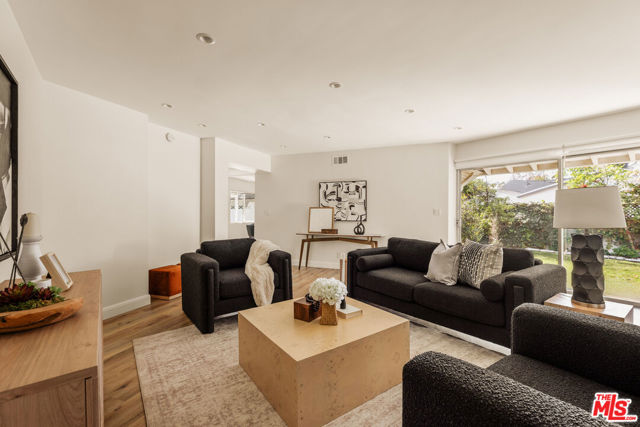 Welcome to this newly remodeled home set on a rare street-to-street lot in Walnut Acres. Upon entering, a bright living and dining area flows into the upgraded kitchen with new appliances, sleek countertops, and a charming herb garden window overlooking the front yard. The spacious family room opens to a flat, grassy backyard with fruit trees, multiple patios, and endless potential to create your own outdoor retreat, ADU, or pool and spa. A split floor plan offers two bedrooms and one bath on each side of the home, with the private primary suite at the rear overlooking the backyard. The primary retreat features dual vanities, a shower/tub combo, and generous closet space.Ideally located just minutes from The Village and Calabasas Commons, this home offers both lifestyle and long-term value. Recent upgrades include updated electrical, recessed lighting, new flooring, remodeled bathrooms, appliances, and an insulated two-car garage with an electric vehicle charger.