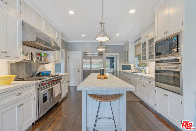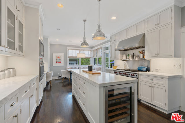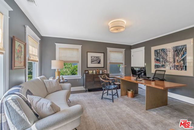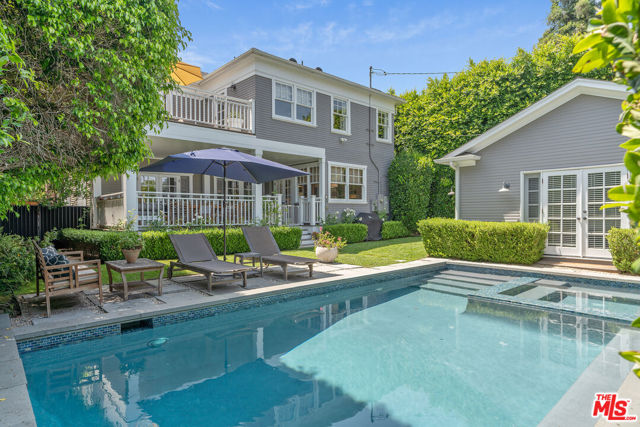 Beautiful East Coast Traditional on Coveted Irving Blvd in Prime Windsor Square. Welcome to this light-filled home that's been lovingly remodeled while keeping all its original charm. A graceful center hall with a sweeping staircase sets the tone as you step inside. To the right, a bright living room with a fireplace opens through French doors to a cozy den overlooking the yard, the perfect spot to relax, watch TV or read a book. A breakfast room connects to the fantastic cook's kitchen featuring high-end appliances, a large center island, tons of storage, and endless counter space. There's even a casual dining area and hangout space with views of the gardens. The back of the house opens to a large entertaining deck that's ideal for summer BBQs and family dinners. You'll also find a formal dining room, a small butler's pantry, and a stylish powder room on this level. Upstairs, the spacious primary suite sits quietly at the back of the house and includes a large walk-in closet, a spa-like bath with a steam shower, and a private roof deck with city and neighborhood views. Three additional bedrooms, two beautifully remodeled bathrooms, and a laundry room complete the second floor. The third floor offers a great bonus space perfect for a gym, playroom, or home office. Out back, the private, hedged yard feels like your own little retreat with a newer pool and spa, outdoor shower, and a great guest house for family and friends. All this just moments from Larchmont Village and everything Windsor Square has to offer. Square footage includes the main house, 3rd floor gym/office and guest house.