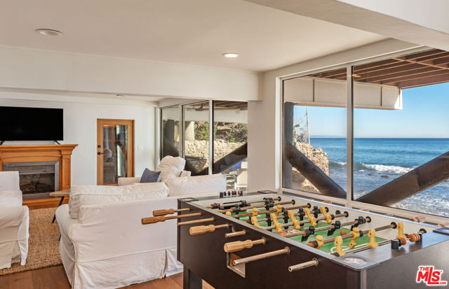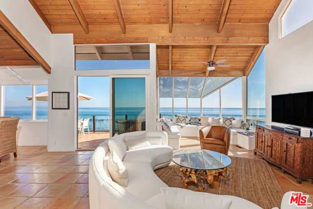 Beautifully remodeled beach home on 68 ft. frontage on Malibu Road. Four bedrooms, 4 baths, plus a separate 1+1 guest suite with its own entrance. Private walled courtyard with a romantic fireplace, spacious outdoor dining area and steps down to the beach, overlooking the ocean. Oceanfront master bedroom suite with spa tub and large deck. Open living area with a flat-screen TV, massive windows to watch the dolphins frolic, and enjoy amazing sunsets and sunrises year-round. Generous sized deck, wet bar, dining area, and chef's kitchen with Viking range. Available Immediately Fully furnished. Also available Summer $55,000/ Month