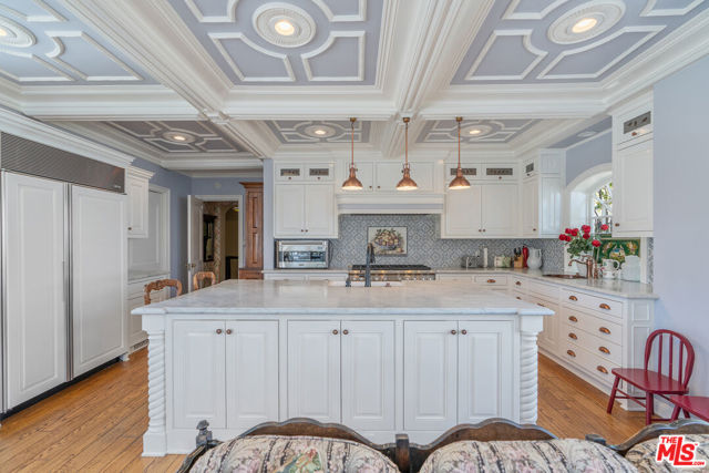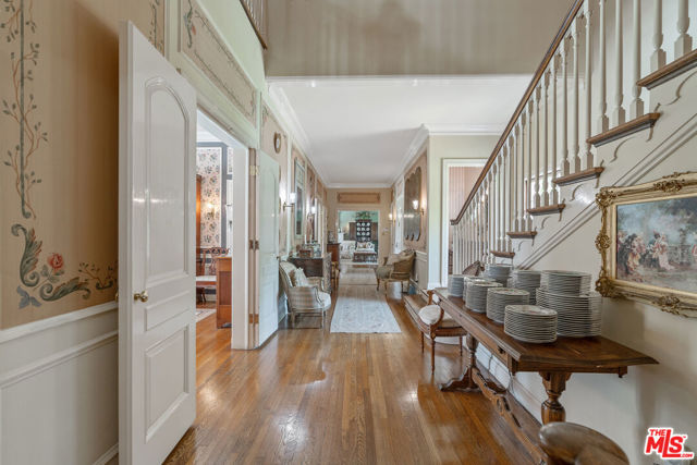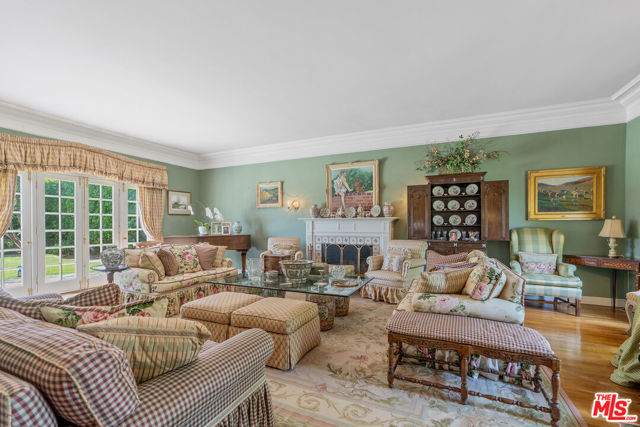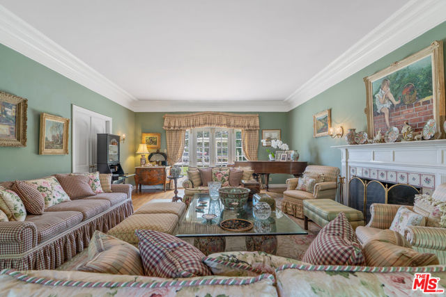 OWNER MAY CARRY UP TO $5,000,000.00 FOR 5 YEARS AT 5% INTEREST & GREAT NEW PRICE. Stately Hancock Park Estate Overlooking Wilshire Country Club. Nestled on one of Hancock Park's most coveted streets, this grand Colonial estate offers sweeping views of the Wilshire Country Club fairways and a lifestyle of timeless elegance. On the market for the first time in over 43 years, this exceptional residence combines classic architecture with gracious proportions and extraordinary indoor-outdoor living. A wide, elegant foyer spans the front of the home, setting the tone for the sophisticated interiors. The formal living room features a stately fireplace and garden views, flowing seamlessly into a library complete with a second fireplace. The impressive formal dining room easily seats 12 and overlooks the manicured rear gardens, creating the perfect setting for memorable gatherings. At the heart of the home is a beautifully appointed chef's kitchen with top-tier appliances, a large center island, and a sunny breakfast area framed by walls of windows. An adjacent family lounge with fireplace offers a comfortable space to relax and entertain. Also on the main level are two powder rooms, a maid's suite with bath, and direct access to a spacious three-car garage. The wide, sweeping staircase leads to a luxurious primary suite with panoramic views of the golf course. This serene retreat includes a sitting area with fireplace, generous dressing room, and a well-proportioned en-suite bath. Four additional bedrooms, three updated bathrooms, a playroom (or potential sixth bedroom), a laundry room with kitchenette, and a large luggage/storage closet complete the upper level. The expansive backyard is designed for entertaining, with multiple outdoor living and dining spaces, a private pool, fireplace patio, and unobstructed golf course views all surrounded by lush landscaping. A true Hancock Park classic, rarely available and set in one of the neighborhood's most prestigious locations. . Private showings only. No public open houses. Fireplaces are decorative.