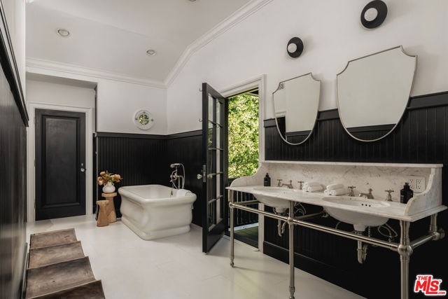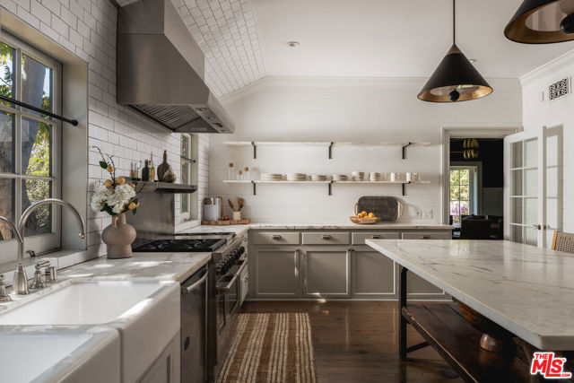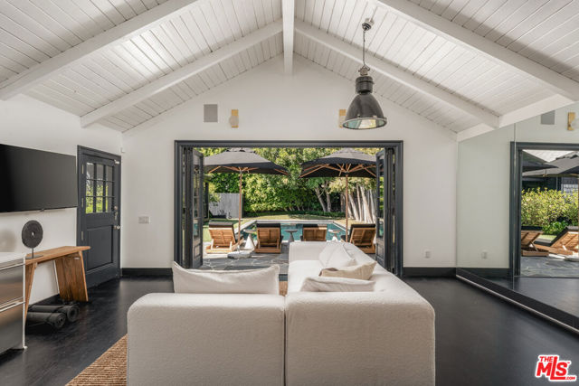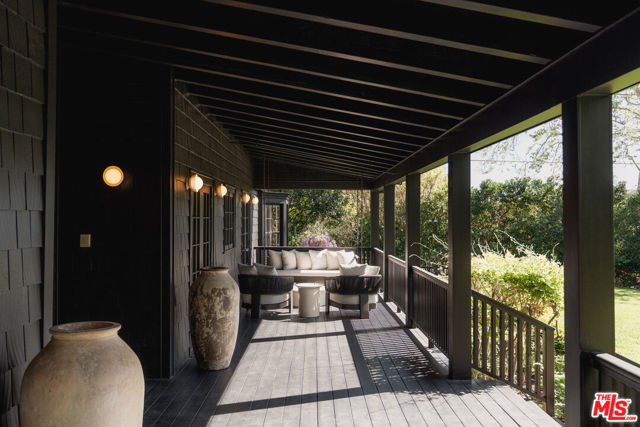 Nestled behind towering hedges and mature trees, this exquisite one-story traditional estate in Brentwood Park offers an unparalleled sense of privacy and serenity. Masterfully reimagined by renowned designer Windsor Smith, the residence is situated on a coveted corner lot, surrounded by sweeping, meticulously manicured lawns that evoke a sense of timeless grandeur. Inside, four generously appointed en-suite bedrooms are bathed in natural light, each a private retreat of comfort and elegance. The formal living room, centered around a stately wood-burning fireplace, sets the stage for refined gatherings, while the chef's kitchen equipped with top-tier appliances and a walk-in pantry seamlessly blends function with sophistication. The inviting family room opens through elegant French doors to one of several covered patios, creating a seamless indoor-outdoor flow that is perfect for entertaining. Beyond, the estate's lush grounds reveal a private oasis complete with a swimming pool, spa, and a sports court, offering endless opportunities for leisure and recreation. A rare offering of distinction and prestige, this remarkable residence embodies the very essence of Brentwood Park living.