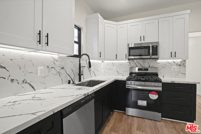 This Charming Victorian Home is located in the Historical West Adams District. The gated 5 Bedroom 3 Bath 2766 Square foot home has been totally renovated throughout with all new windows, flooring, stainless steel appliances, washer/dryer, HVAC, ,electrical, plumbing and solar panels that are owned not leased. As you enter the foyer the original seating is still intact as well as the beautiful beams overhead. When you walk into the Great Room with lots of natural light notice the pocket doors that lead into the large Dining Area with the original Fireplace. As you continue to the Kitchen with its quartz counters and all white custom cabinets with all new appliances that leads to a service porch with more storage and also houses the washer/dryer and refrigerator that leads to the huge backyard. All Bedrooms are upstairs with an additional 2 full Bathrooms with ample storage. Look no further because this home has everything you need for whatever projects you wish to pursue. You can move in and enjoy all it has to offer or perhaps rent to USC students. The backyard can be used to build an additional ADU as it is zoned LAR2 so your options are wide open. You are close to all the restaurants and museums as well.