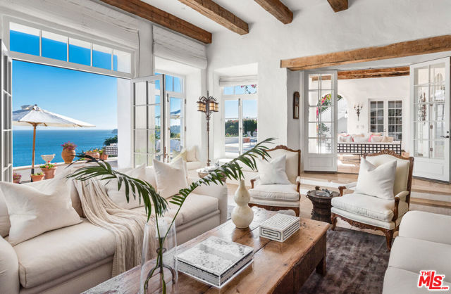 A once in a generation oceanfront estate located in Paradise Cove with its own private path to the beach. A winding private gated driveway leads to the main house through a grove of a hundred mature olive trees. Designed by Marc Appleton, the home is reminiscent of a home on the coast of Mykonos. With breathtaking scale, thick plaster walls and beautiful outdoor spaces, the home is designed into a cluster of separate volumes that resemble a small village. The compound sits on the edge of the sea with flat, domed, and vaulted roofs punctuated by tall chimneys. Featuring a stunning living room, media room/den, formal dining, gourmet kitchen, all overlooking unobstructed head-on views of the Pacific Ocean. The primary suite has a sitting room with fireplace and luxurious baths, closets, and its own private terrace. There are three additional bedrooms in the main house, all with wood burning fireplaces and rooms interconnected through breezeways and arbors. There is a beautiful guest house and additional staff quarters, a full regulation tennis court and resort-like swimming pool. Take a walk down your private pathway to the most stunning beach with its own beach bar on the sand. A truly once in a lifetime opportunity to acquire one of Paradise Cove's most spectacular properties. Shown to prequalified clients only.