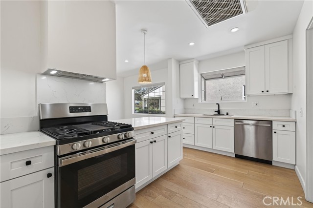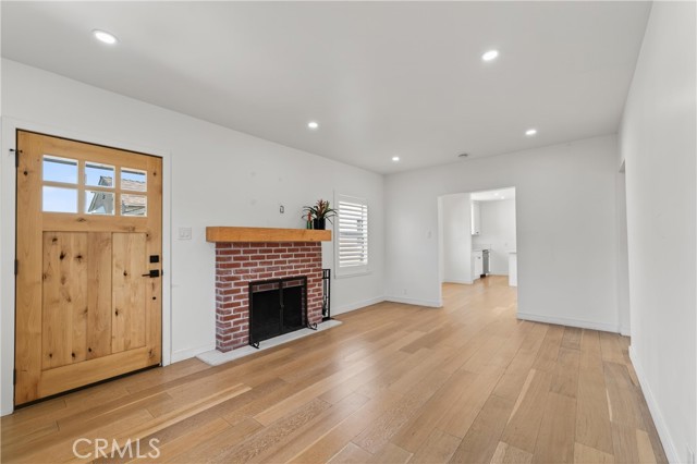 Back on the Market – Price Reduction! This beautifully remodeled residence combines thoughtful design with modern comfort and is now vacant and move-in ready. Step through a spacious gated front lawn and a custom-crafted front door into an open, light-filled layout. Large windows highlight the warmth of engineered hardwood flooring throughout, while the U-shaped quartz countertop with breakfast bar anchors the kitchen and dining area—ideal for entertaining or everyday living. Additional highlights include central air conditioning and a tastefully finished fireplace for year-round comfort. With a recent $50,000 reduction, this home is priced to sell!