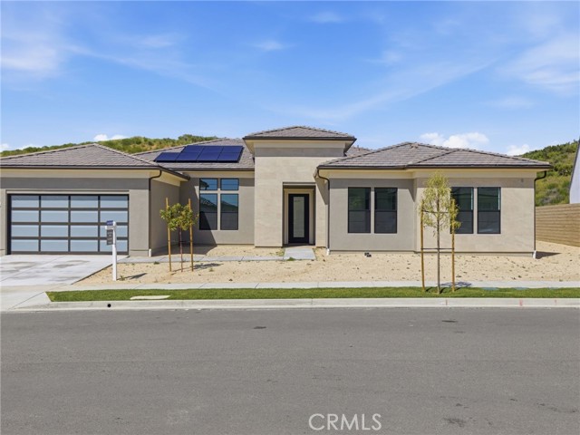 This beautifully designed Astra is fitted with Palomino craftsman cabinets in the kitchen, complimented by a quartz countertop and matte black hardware. Throughout the kitchen, living areas, and bathrooms, this home offers upgraded 12 x 24 tile flooring, with Wildwood Valley Shaw carpet in the bedrooms. Enjoy this open concept home design fitted with a sleek modern fireplace in the great room, along with an upgraded 90 degree door at the great room opening up to the outdoor living area. The spacious flex room offers versatile living and entertaining options. This move-in ready home sits on an estimated homesite size of 10,939 square feet offering generous spacing between neighboring residences. Last opportunity for this home design as we only have 4 left for sale behind the gates of Tesoro. Photo displayed are of model home not subject. Photos coming soon.
