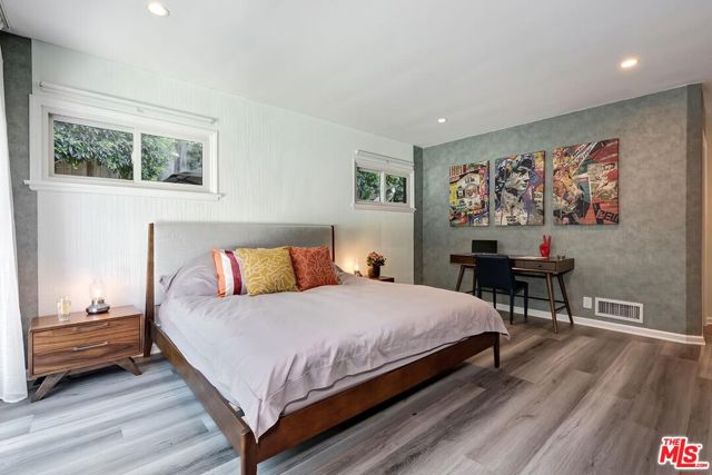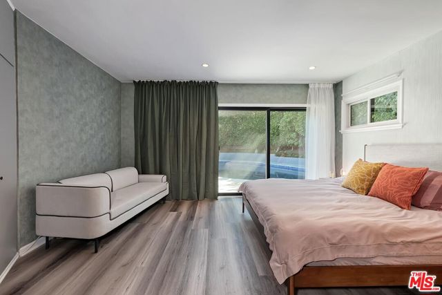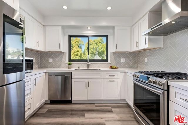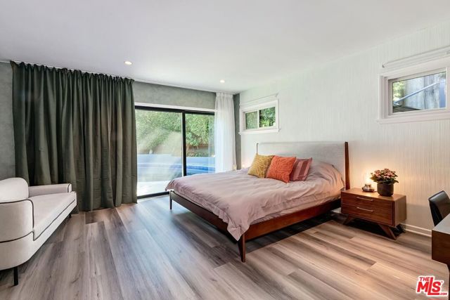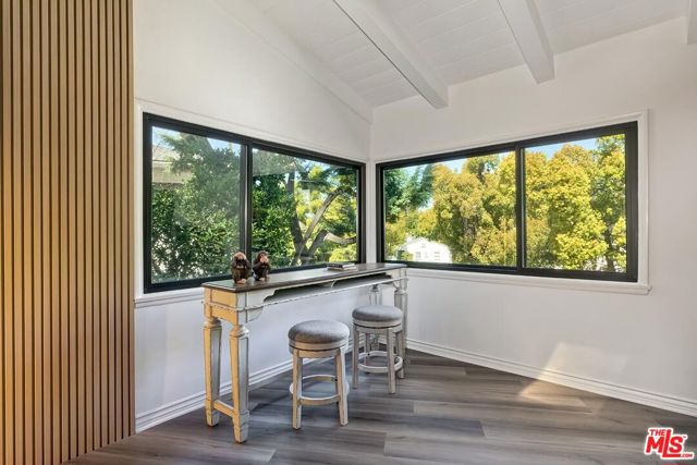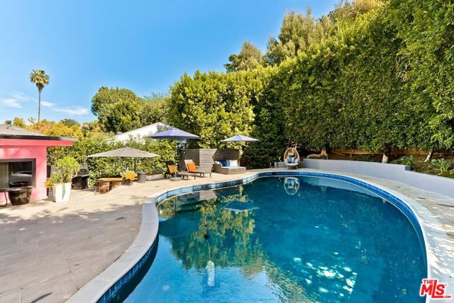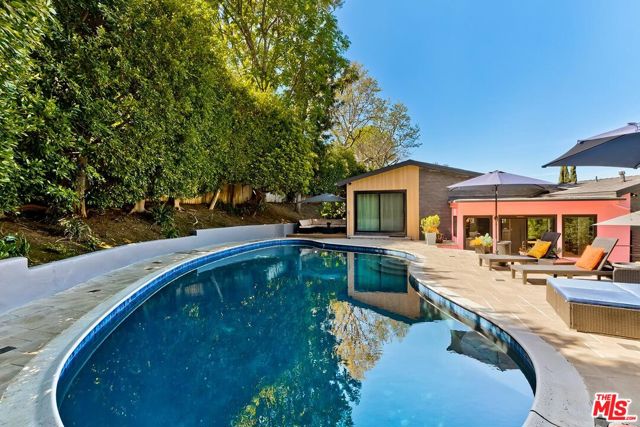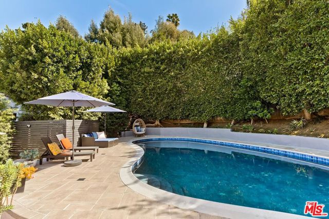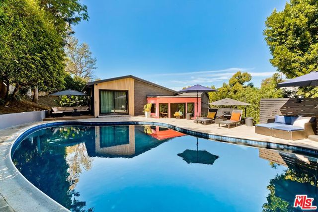 Stunning and dramatic Contemporary Remodeled Pool/view home in Lake Hollywood - Located in the highly sought-after Lake Hollywood Knolls neighborhood and on one of the most appealing streets, this dramatic contemporary and fully-furnished home features a spacious great room with vaulted-beamed ceilings, a fireplace, skylights, and newer Anderson Windows that showcase the treelined views from every window! The huge living room can accommodate an office and opens to the dining area, kitchen, and den. The elegant kitchen features all-new stainless steel appliances, quartz countertops, cabinets, and a chevron-design tile backsplash. The refrigerator is Wi-Fi enabled with a video screen and too many features to mention. The den/family room is cozy and opens to the backyard (It could also serve as a 4th bedroom). It is ideally located beside the kitchen, and the 3/4-bath perfectly serves the den and swimmers coming in from the pool area. All three bedrooms are slightly elevated above the living area. The primary suite has ample closet/storage space, beautifully remodeled, a tub, and a separate shower. The guest bedrooms are adjacent to the primary suite, with good closet space/storage and a stunning Quartz bathroom with a walk-in shower. Outdoor living is at its best, with an entertainer's backyard boasting a large pool, with plenty of room to BBQ, relax, sun, or read a book, all in privacy. Lake Hollywood is centrally located, adjacent to Universal Studios, Warner Bros., Disney Studios, The Hollywood Bowl, hiking trails, The Lake, and the dog park. It is also just 5 minutes away from Ralphs, Vons, Trader Joe's, Whole Foods, and various good restaurants. Available fully furnished only. All applicants must have an excellent credit rating, no exceptions.