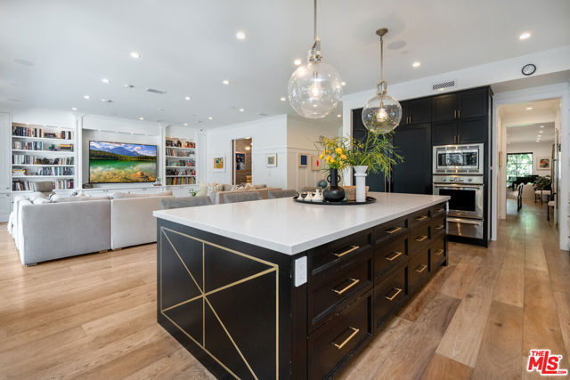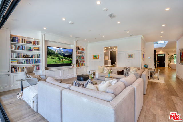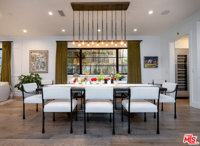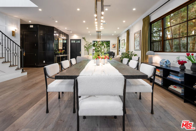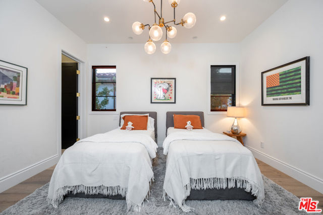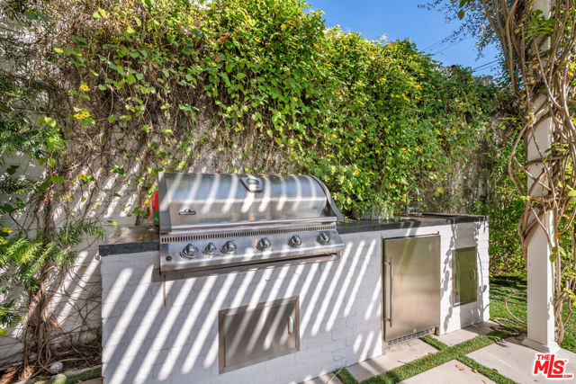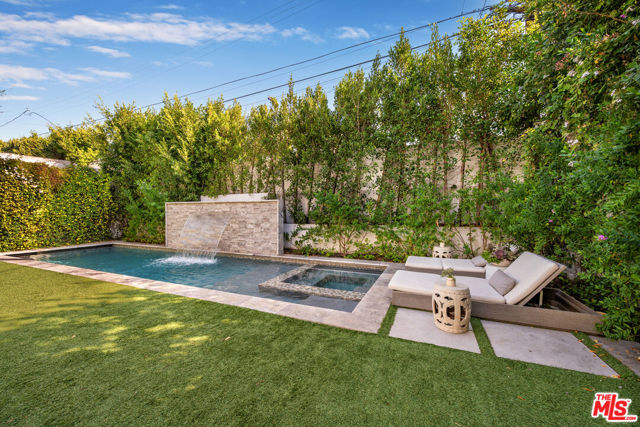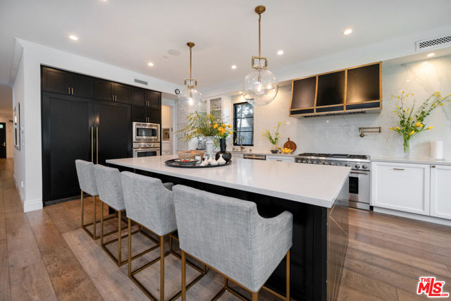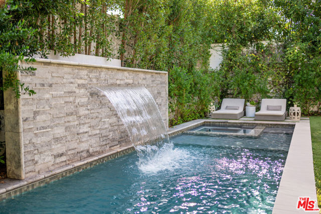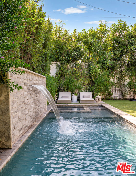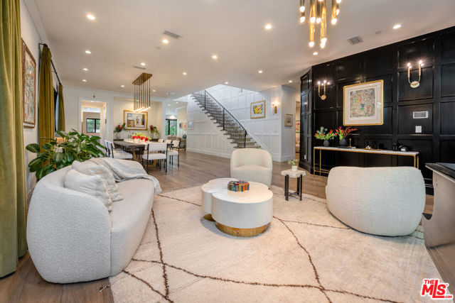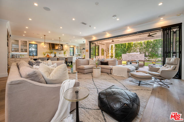 Beautifully designed and impeccably built in 2017, this mint-condition private 6-bedroom, 6-bath smart home is ideally located in the heart of Beverly Grove, offering the perfect blend of traditional charm and contemporary sophistication. From the moment you enter, the home exudes a warm and inviting ambiance, thoughtfully crafted for both comfortable everyday living and elegant entertaining.The first floor features expansive formal living and dining spaces creating an effortless sense of openness and comfort. At the heart of the home is an exceptional custom eat-in kitchen, complete with a large walk-in pantry and a 100-bottle wine refrigerator. The kitchen flows seamlessly into an inviting great room with 20-foot stackable bi-fold doors, opening to a spacious covered patio for true indoor-outdoor living.The main level also includes two generously sized bedrooms with en-suite baths and a stylish powder room. Upstairs, three additional en-suite bedrooms with ample closets provide comfort and privacy, while the stunning primary suite serves as a peaceful retreat, showcasing dramatic volume, 14-foot vaulted ceilings, a massive walk-in closet, a luxurious spa-like bath, and a private patio overlooking the backyard.The meticulously maintained grounds feel like a private resort, featuring a large grassy yard, trellised outdoor dining area, and a sparkling pool with waterfall, Baja shelf, and spa. This move-in ready home, maintained in pristine mint condition, offers the ultimate warm and welcoming lifestyle in one of Los Angeles' most sought-after neighborhoods.