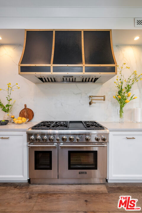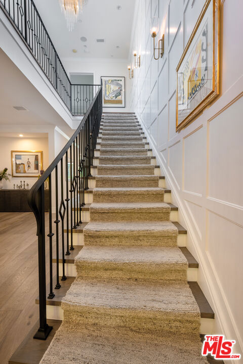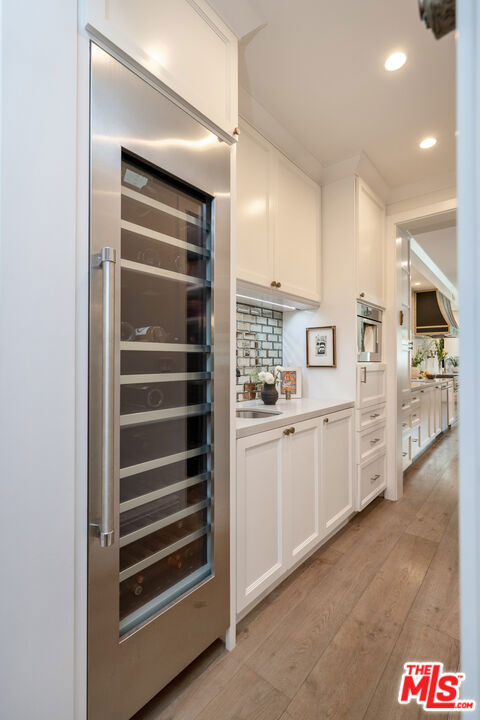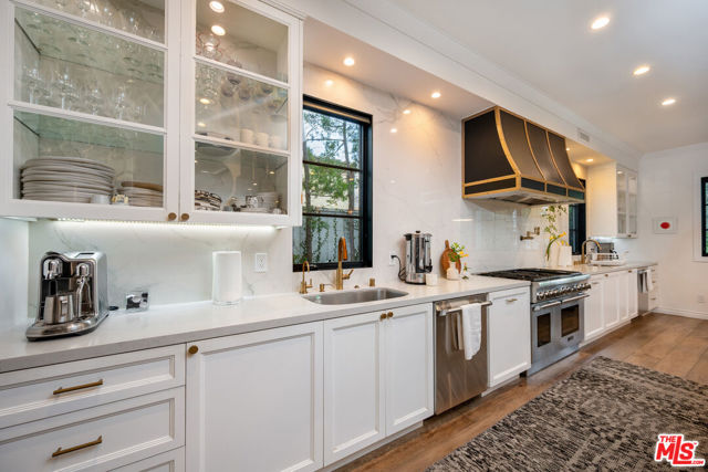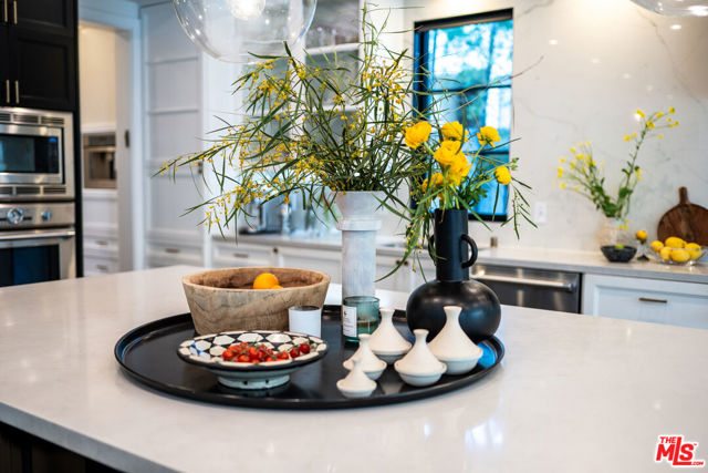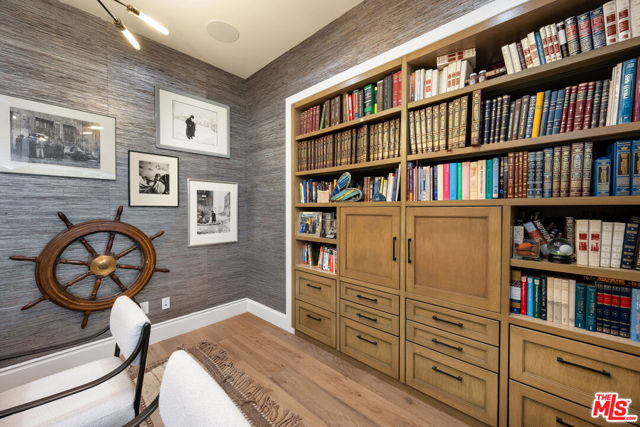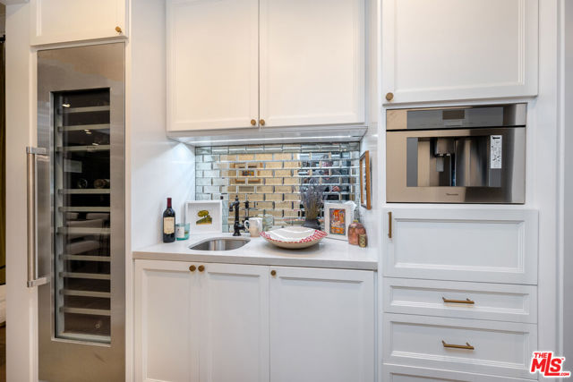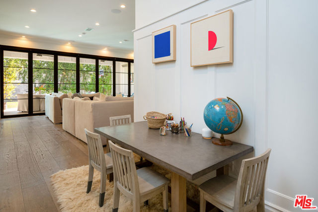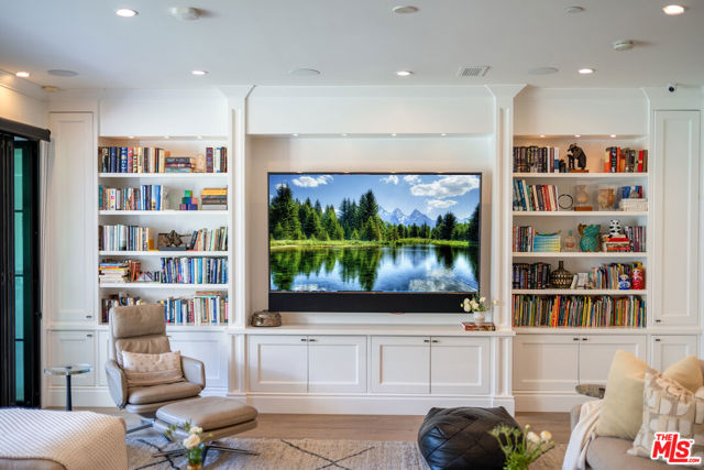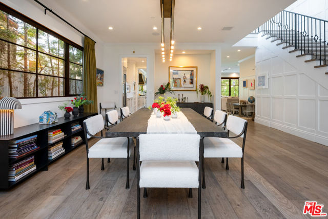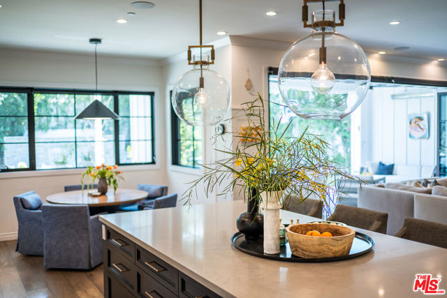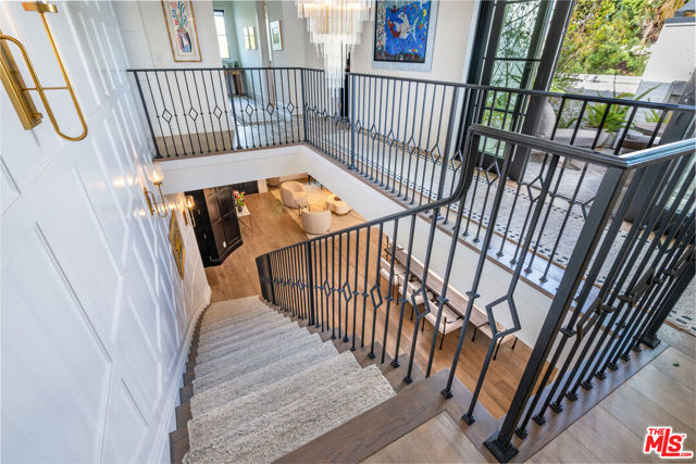 Beautifully designed and impeccably built in 2017, this mint-condition private 6-bedroom, 6-bath smart home is ideally located in the heart of Beverly Grove, offering the perfect blend of traditional charm and contemporary sophistication. From the moment you enter, the home exudes a warm and inviting ambiance, thoughtfully crafted for both comfortable everyday living and elegant entertaining.The first floor features expansive formal living and dining spaces creating an effortless sense of openness and comfort. At the heart of the home is an exceptional custom eat-in kitchen, complete with a large walk-in pantry and a 100-bottle wine refrigerator. The kitchen flows seamlessly into an inviting great room with 20-foot stackable bi-fold doors, opening to a spacious covered patio for true indoor-outdoor living.The main level also includes two generously sized bedrooms with en-suite baths and a stylish powder room. Upstairs, three additional en-suite bedrooms with ample closets provide comfort and privacy, while the stunning primary suite serves as a peaceful retreat, showcasing dramatic volume, 14-foot vaulted ceilings, a massive walk-in closet, a luxurious spa-like bath, and a private patio overlooking the backyard.The meticulously maintained grounds feel like a private resort, featuring a large grassy yard, trellised outdoor dining area, and a sparkling pool with waterfall, Baja shelf, and spa. This move-in ready home, maintained in pristine mint condition, offers the ultimate warm and welcoming lifestyle in one of Los Angeles' most sought-after neighborhoods.