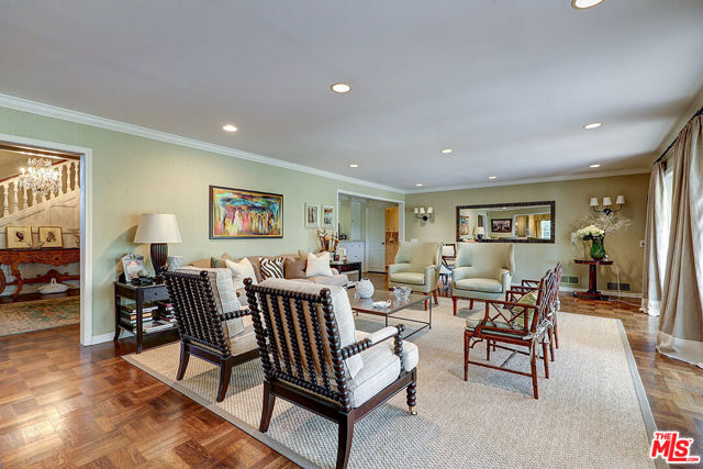 SALE SUBJECT TO BANKRUPTCY COURT APPROVAL AND OVERBID! Perched directly on the legendary 15th hole of the Wilshire Country Club golf course, this 1949 English Tudor Revival masterpiece commands one of Los Angeles's most coveted positions where manicured fairways become your private backyard and the rhythm of the game unfolds just beyond your morning coffee. Within the distinguished Hancock Park Historic Preservation Overlay Zone, this stately residence presents 6,620 square feet of refined living across an expansive 14,207-square-foot lot, marrying seven decades of architectural gravitas with the gracious proportions that define truly exceptional homes. The Interior Journey A formal entryway establishes the home's unhurried elegance, leading to a living room where beamed vaulted ceilings soar above a central fireplace. The formal dining room awaits your most memorable gatherings, while original hardwood floors trace a warm path through principal rooms. Six bedrooms and six bathrooms unfold across two thoughtfully appointed floors. The primary suite transcends mere accommodation a private sitting area, a balcony surveying the golf course, dual his-and-hers bathrooms (hers featuring a dedicated sitting room, vanity, and soaking tub), and generous closet space create a genuine sanctuary. Three additional second-floor bedrooms offer en-suite baths; another provides custom built-in shelving for the collector or bibliophile. A distinctive dual-kitchen configuration with two separate living areas presents exceptional versatility for multi-generational households or live-in staff a quietly sophisticated arrangement increasingly sought in today's finest homes. The main kitchen features a granite-topped island, double ovens, and an adjacent breakfast area. A main-floor office, basement storage, and central climate control complete the interior offerings. The Grounds Southern California's signature indoor-outdoor lifestyle flourishes here. An in-ground pool and spa anchor the rear gardens, while mature landscaping cultivates a sense of secluded retreat. The covered patio ideal for al fresco entertaining frames potential views across the verdant fairways, where the only interruption is the occasional applause from a well-played approach shot. The Address North of Beverly, south of Melrose, east of Highland, and sharing its boundary with one of Los Angeles's most storied private clubs, 322 N June Street occupies the precise coordinates that have defined Hancock Park prestige for generations. Historic architecture. Substantial scale. Golf course splendor. An address of uncommon distinction. The property offers driveway parking with carport. As with residences of this heritage, opportunities exist for selective updates to reflect contemporary preferences.