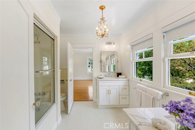 ALL NEWLY RENOVATED AND MOVE-IN READY! This breathtaking 5 bedroom, 4+ bathroom estate with 2-car garage sits upon an ultra-luxe 13,525 square ft. (.31 acres) lot and is conveniently located within short-walking distance to the prestigious Marlborough School and vibrant Larchmont Village. On the market for the first time in over 50 years, this freshly renovated, historic 1927 Georgian style estate located in highly coveted Windsor Square in Hancock Park. Designed by well-known Windsor Square architect Robert D. Jones, this gem is ideally situated behind mature magnolia and pear trees and accented with wood siding and white brickwork. Honoring the property's historical and architectural integrity, every inch has been meticulously restored. Renovations include ALL-NEW custom landscaping, lighting, and irrigation, ALL-NEW driveways and walkways, ALL-NEW plumbing throughout the house and an ALL-NEW main sewer line to city street, ALL-NEW electrical throughout the house and a 400-amp main panel and subpanel in basement, ALL-NEW heating and air conditioning systems with enhanced capacity, ALL-NEW Thor Kitchen appliances, ALL-NEW ADT Security System, along with refurbished original wood windows and a combination of original period classic and new wide-plank honey toned oak flooring, this gorgeous estate epitomizes old-world elegance with a perfect blend of modern lifestyle spaces and conveniences. All of the rooms are filled with sunlight and overlooking the elegant front garden and estate scale rear lawn, bright blue pool and manicured garden spaces. Outside, well-proportioned conversation spaces surround the pool, in conjunction with lush expanses of lawn up to the edge of the pool and immersed in rose and star jasmine-filled aromas that create a classic setting to entertain, play or relax amidst the serene private garden. Anchoring the grand rear garden area, and unique to most residences in Windsor Square, is a detached guest house with a Certificate of Occupancy and complete with ½ bath, that can be adapted to any number of creative designs from home office to exercise studio. Additionally, at the front of the residence is a separate two-car garage enhanced with ample side-by-side space in the driveway for 4 additional cars. This home was featured in Matthew Broderick’s 1983 film “War Games”.