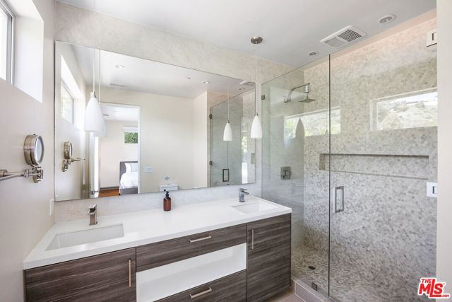 Sherman Oaks compound offering an effortlessly relaxed California lifestyle. Stunning glass walls welcome you into the two-story entry level with a family room, movie theatre, and lavish primary suite. A striking floating staircase leads to the main level, encompassing the living room, dining room, and a chef's kitchen with Thermador appliances and bespoke Italian cabinetry. Expansive Fleetwood pocket doors open to the resort style backyard with infinity pool and spa, multiple grassy areas, and a fantastic 1 bedroom guest house. With Control 4 smart home features, generous parking, captivating views and elevator, this home offers all of the style and amenities you're looking for.