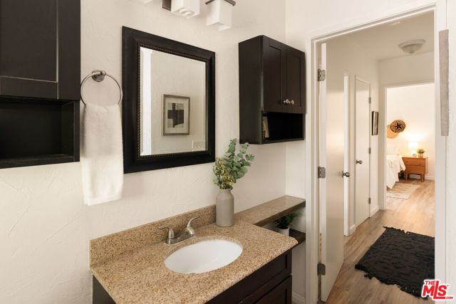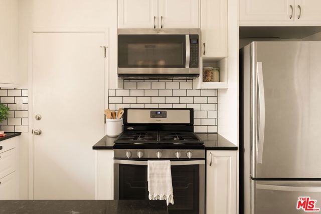 Come see the best value condo in West LA! 3641 Kalsman Dr Unit 4 is a top-floor 2-bedroom, 1.5-bathroom condominium that was lovingly upgraded by an owner who paid attention to the details. Elevated interior features include rigid-core luxury vinyl plank flooring laid over acoustic-insulating cork, double-hung dual-pane windows with custom treatments, and solid wood interior doors, all of which maximize durability and create a quiet, relaxing atmosphere. The kitchen was renovated with chic Caesarstone countertops, a matching subway tile backsplash, soft-close cabinetry, sleek stainless-steel appliances, and water filtration systems for both the kitchen sink and the automated ice machine. Recessed and dimmable lighting throughout further add to the premium feel of the unit. Both bedrooms are spacious, private retreats. Oversized closets with sliding mirror doors and whisper-quiet Casablanca ceiling fans ensure year-round comfort. The in-unit washer and dryer, central heat, and a private one-car garage with built-in storage cabinets provide ultimate convenience. Residents also benefit from an additional parking space in the common area and plenty of on-site parking for guests. The condo sits within Cameo Woods, a 24/7 guard-gated community providing resort-style living. This is one of the best-positioned units in the complex, centrally located away from the noise of any public streets. The top-floor elevation allows in excellent natural lighting. Picturesque views of mature trees and grassy courtyards from every room enhance the sense of peace and tranquility that other units simply do not provide. Life within this community feels like living in a private park, with over 20 acres of landscaped grounds to enjoy. Amenities include a pool, two hot tubs, a tennis court, a dog run, a community garden and a clubhouse. This home offers easy access to Downtown Culver City, West Adams, Downtown LA, LAX, local beaches, the Baldwin Hills Scenic Overlook, Kenneth Hahn Park, and the Expo Line, making it an ideal choice for those seeking a move-in ready home in a vibrant neighborhood.