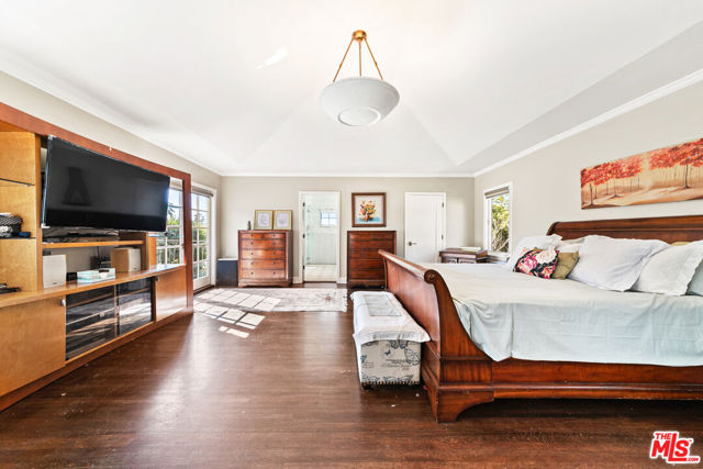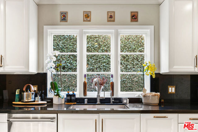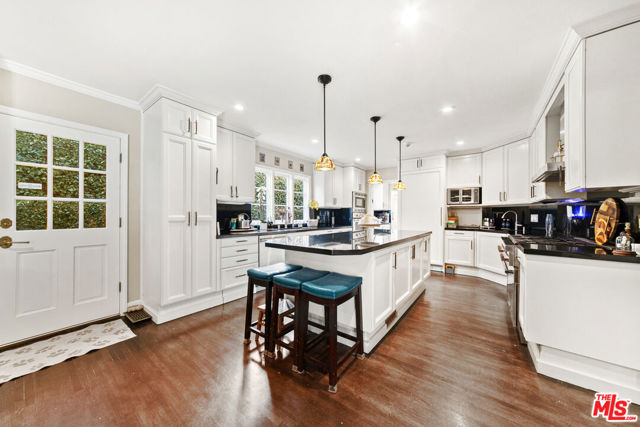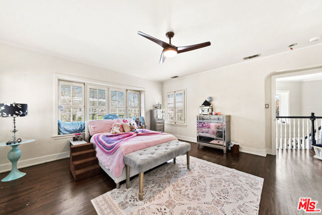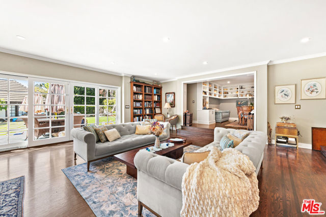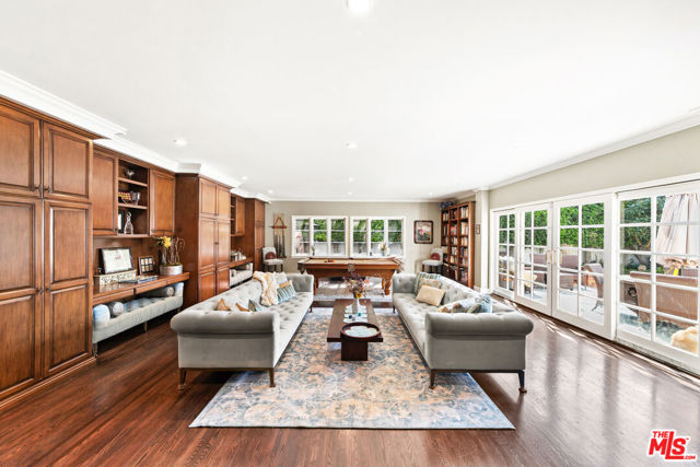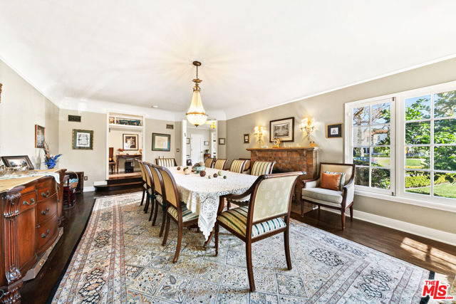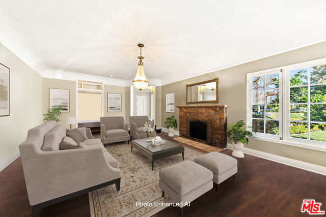 Welcome to a truly extraordinary residence in the heart of Hancock Park, where timeless elegance, warmth, and grandeur come together to create a home meant to be lived in and cherished. Nestled on one of Los Angeles' most prestigious tree-lined streets, this expansive estate invites you in with a sense of arrival that is both impressive and deeply comforting. From the moment you enter the grand formal foyer, you are embraced by rich wood floors that flow seamlessly throughout, setting the tone for the home's classic character and refined sophistication. The magnificent step-down living room is both dramatic and inviting, anchored by a stunning Batchelder tiled decorative fireplace an architectural centerpiece that evokes evenings filled with conversation, laughter, and quiet reflection. The formal dining room stands ready to host unforgettable dinners and holiday celebrations, while a thoughtfully placed powder room adds convenience for guests. Just beyond, the enormous family room unfolds as the true heart of the home a welcoming space designed for connection and comfort. Sunlight pours through elegant French doors that open to a private backyard sanctuary, creating a seamless indoor-outdoor experience perfect for morning coffee, weekend gatherings, or peaceful moments beneath the California sky. The chef's kitchen is as functional as it is inspiring, featuring a massive center island, dual sinks, warming drawers, oven, and cook top crafted for both everyday living and extraordinary entertaining. A charming breakfast area with custom built-ins provides the perfect setting for casual mornings and intimate family meals. The main level also offers a private bedroom with a full bath, ideal for guests or extended family, along with a dedicated laundry room for added convenience. Ascending the grand staircase, the upper level reveals a thoughtfully designed private retreat. Two spacious bedrooms feature their own en-suite baths, while two additional bedrooms share a beautifully appointed full bathroom. The primary suite is nothing short of spectacular, a serene haven complete with expansive patio access, two generous closets, and a newly remodeled, resort-inspired bathroom designed for relaxation and renewal. Adding even more versatility, the converted garage offers a bonus space ideal for a home office, creative studio, gym, or playroom tailored to your lifestyle needs. This remarkable Hancock Park residence is more than just a home it is a place where memories are made, milestones are celebrated, and life unfolds beautifully. Perfectly suited for large families and those who love to entertain on a grand scale, this is a rare opportunity to experience the comfort, prestige, and timeless charm of one of Los Angeles' most iconic neighborhoods.