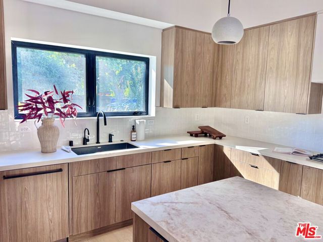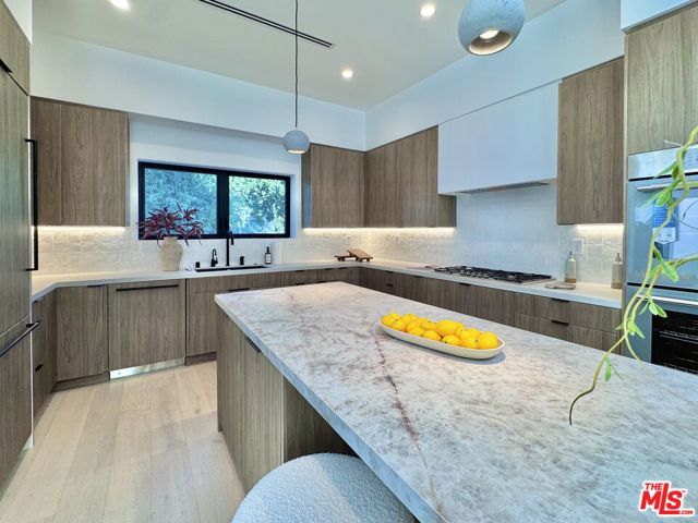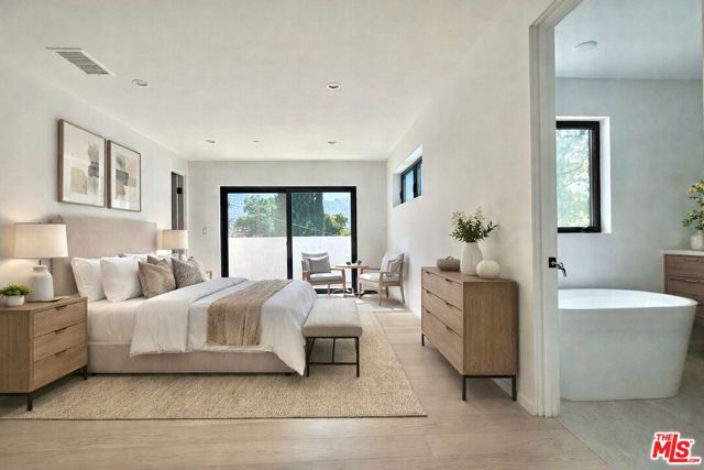 INCREDIBLE PRICE. Priced to be the LOWEST priced NEW construction in Studio City! Every great story begins with a setting. This one begins on the Island of Studio City. Hidden within one of the most discreet pockets of Studio City, this newly built architectural home feels worlds away from the city yet sits just moments from Universal Studios Hollywood and the vibrant energy of Ventura Boulevard. Step inside and the scene unfolds: soaring ceilings, sunlit open spaces, and a sculptural staircase that immediately sets a dramatic tone. Designed for modern living, the home offers four en-suite bedrooms, including two on the main level for flexible living, guests, or creative space. The chef's kitchen takes center stage with quartz countertops, custom cabinetry, handcrafted Zellige tile, and seamless Thermador appliances flowing naturally into the living and dining spaces designed for entertaining. A beautiful glass accordion door opens to a private courtyard retreat, creating the effortless indoor-outdoor lifestyle Southern California is known for. Whether hosting friends under the stars or enjoying a quiet morning coffee, the setting feels both intimate and elevated. Upstairs, the primary suite plays the role of a true sanctuary. Abundant natural light, custom closets, and a spa-inspired bath designed to unwind after a long day in the city. Modern comforts complete the experience, including fully paid solar, integrated smart-home technology, designer finishes, and thoughtful details throughout. Minutes from the studios and tucked into one of Studio City's best-kept secrets beside one of the most hidden South Weddington Park, this home offers something rare in Los Angeles: A place where privacy, design, and location all share the spotlight. Welcome to the Island of Studio City.