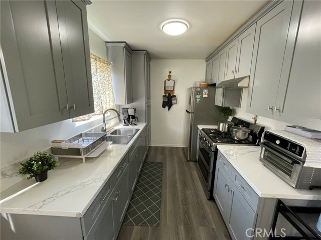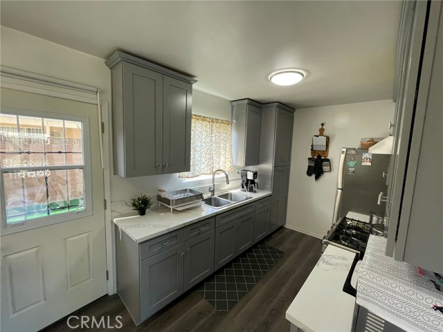 Remodeled 3-bedroom, 2-bathroom downstairs unit in a well-maintained fourplex located in the city of Montebello. This unit features a fully updated kitchen with quartz countertops, modern cabinetry, and laminate flooring throughout. Enjoy the convenience of an indoor common area laundry room with a separate dedicated space, along with a private backyard and front enclosure, offering added comfort and functionality. The property includes one carport space and one additional parking space. Conveniently located near major freeways including the 60, 10, 605, 5, and 710, providing easy access to Downtown Los Angeles, shopping centers, restaurants, and local amenities.