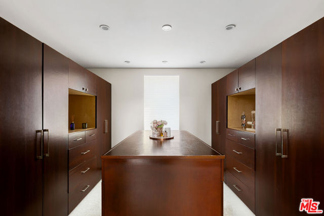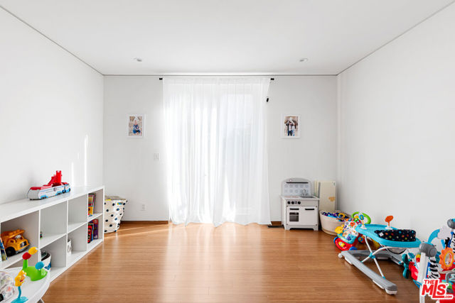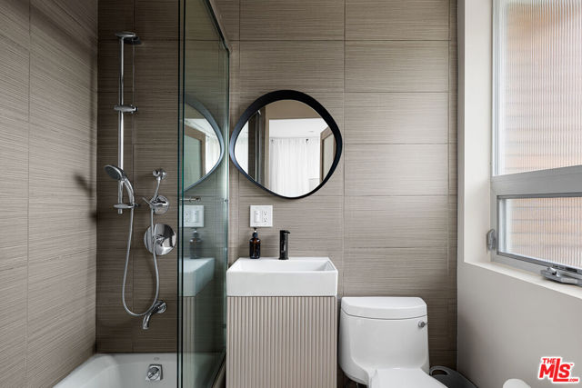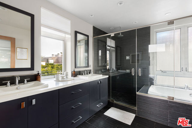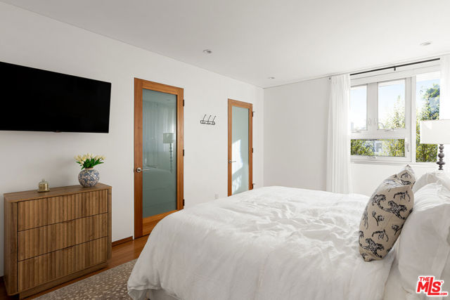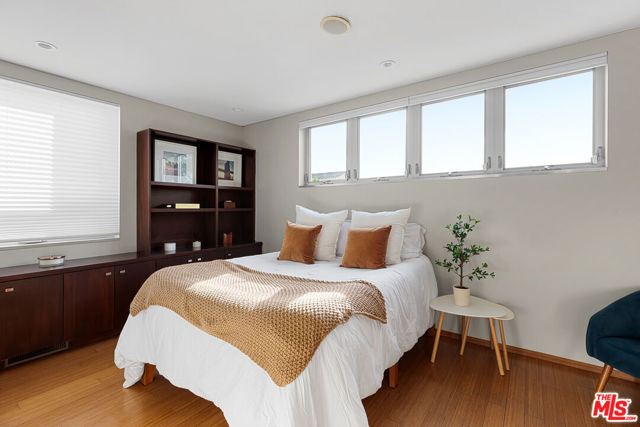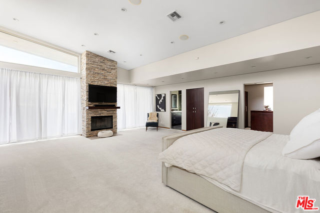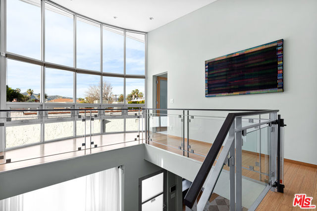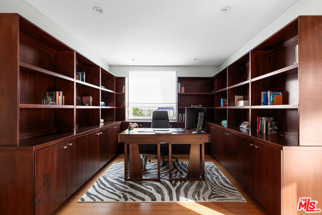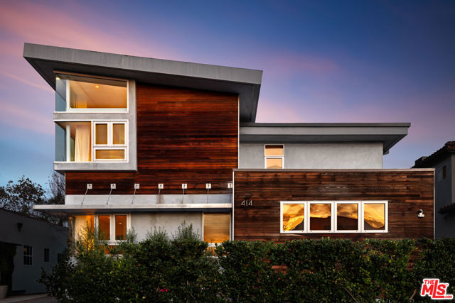 Readily changeable to five or six bedrooms with ADU potential for additional income! Floor-to-ceiling panes of glass, picture windows, rich wood panels, and smooth concrete converge to form the striking exterior of this recently remodeled and upgraded contemporary home, set back from the street with a brick-laid motor court and privacy hedges. The light-filled living room includes a ledgestone fireplace flanked by built-ins, walls of glass, and wood floors that flow throughout the entertaining spaces. In the sleek kosher kitchen, discover open shelving, wine storage and refrigerator, two dishwashers, double oven with warming drawer, ample cabinetry, pantry, granite countertops, and large center island with breakfast bar seating and cooktop with hood. The dining room faces sliding glass that opens to the rear deck for and indoor-outdoor dining experience. Ascend the stairs in the open foyer to a brilliant landing with massive window display showcasing treetops and blue skies. The primary suite is massive, complete with fireplace, built-ins, balcony access, and en-suite bath with separate tub and rainwater shower plus a dual-sink vanity. A custom walk-in closet includes ample storage and a large dresser island. Secondary bedrooms also feature built-ins plus an abundance of space, and the mahogany-clad office is perfect for study, work, and play. In the backyard, dine al-fresco, enjoy the brand-new organic pet-safe grassy turf yard, or utilize the three-car garage as a gym, dance studio, artist's haven, yoga, meditation, and more. This excellent neighborhood is central to the iconic Melrose Arts District with its trendy fashion boutiques and The Grove, right by Erewhon and moments to the nightlife, entertainment, shopping, and fine dining of West Hollywood, Larchmont Village, Beverly Hills, and the Westside. Synagogues are also within close proximity.