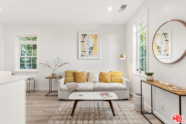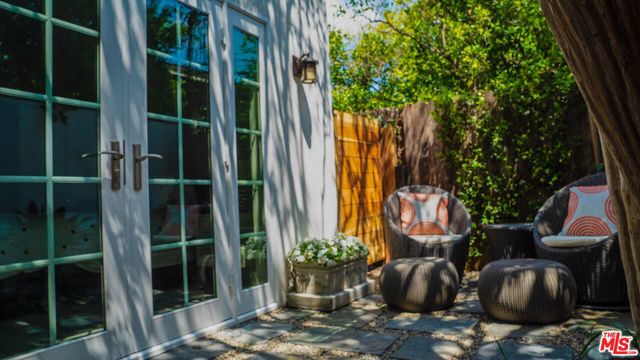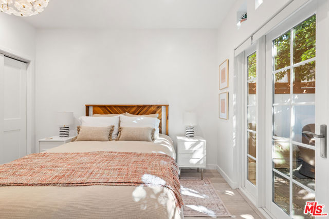 Tucked within a quiet residential enclave in the Melrose district, this beautifully designed fully furnished one-bedroom, one-bathroom Spanish contemporary house offers refined living with exceptional privacy. Sunlight pours through expansive windows and French doors, creating a bright, airy interior that seamlessly connects to a tranquil private garden patio shaded by mature trees. The open-concept living space is thoughtfully appointed with upscale furnishings, wide-plank flooring, and a modern kitchen featuring quartz countertops, stainless appliances, and a central island - perfect for both everyday living and entertaining. The serene bedroom retreat includes a queen bed, workspace, and elegant French doors opening to a private Zen-inspired outdoor lounge. Additional amenities include washer/dryer, central heat and air conditioning, high-speed internet, keyless gated entry, and multiple outdoor relaxation areas, all curated to provide a comfortable, turnkey living experience. Ideally located moments from the shopping, dining, and creative hubs of Melrose Avenue, The Grove, and Pacific Design Center, with convenient access to Hollywood, Downtown Los Angeles, and Santa Monica. A sophisticated, private retreat in one of Los Angeles' most vibrant and central neighborhoods.