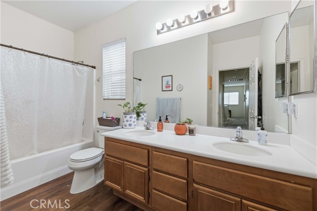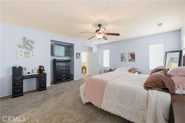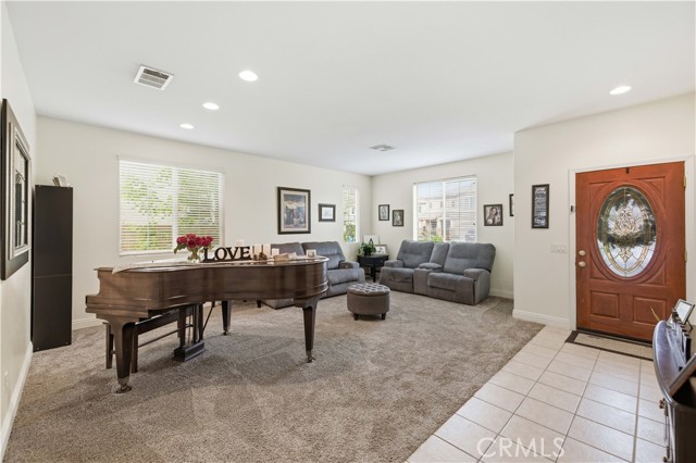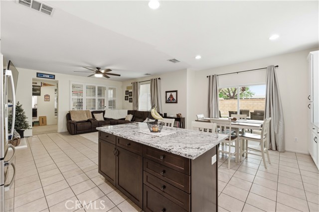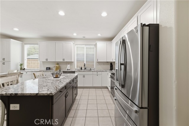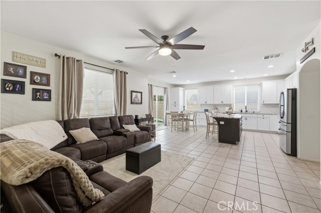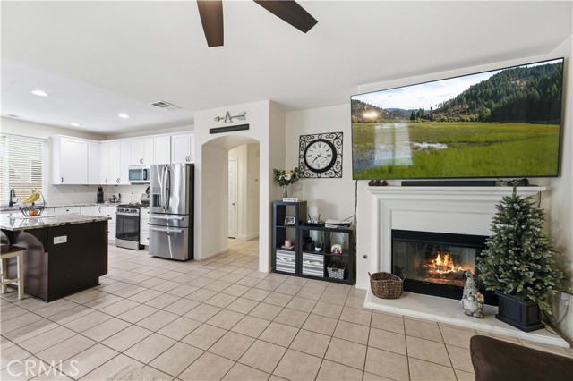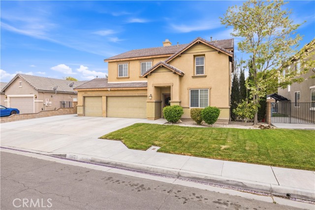 Welcome home to this spacious 2,815 sq. ft. residence offering 4 bedrooms and 3 bathrooms. A beautiful custom front door with a stained-glass window welcomes you into the tiled entryway, where a generously sized, carpeted front living room provides the perfect setting for family gatherings or quiet evenings in. A guest bathroom is conveniently located downstairs for added comfort and accessibility. The heart of the home is the remodeled kitchen, thoughtfully updated with granite countertops, crisp white cabinetry, a center island, black faucet, and modern black hardware. Extended countertop space and added pantry storage enhance both style and function. The kitchen features tile flooring, which continues seamlessly into the dining area and the open family room. The family room offers a warm and inviting atmosphere with its cozy fireplace. Just off this space is a separate bonus room, currently used as a gym, but easily converted into a 5th bedroom, office, or playroom depending on your needs. Upstairs, the oversized primary bedroom provides a true retreat. It features two walk-in closets that lead into the spacious primary bathroom complete with a soaking tub and glass-enclosed shower. Three additional upstairs bedrooms offer generous space, including one with its own private alcove or sitting area--perfect for reading, studying, or relaxing. All bedrooms are equipped with ceiling fans, and the laundry room is conveniently located upstairs. The backyard is expansive and professionally landscaped, featuring a covered patio, two grass areas, and attractive concrete curbing--ideal for entertaining, play, or peaceful outdoor living. The 3-car garage includes a pull-through bay that opens to the backyard, where you'll find concrete parking, RV access, and RV gates along the side of the home. This home is also commuter-friendly, offering quick access to major routes, and is close to schools, shopping, and everyday conveniences.